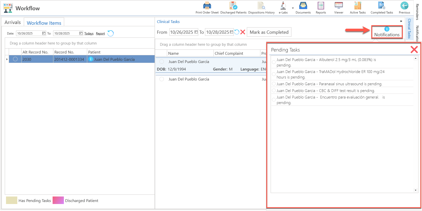- Presione la pestaña de "Clinical Tasks", localizada en la parte derecha de la pantalla.