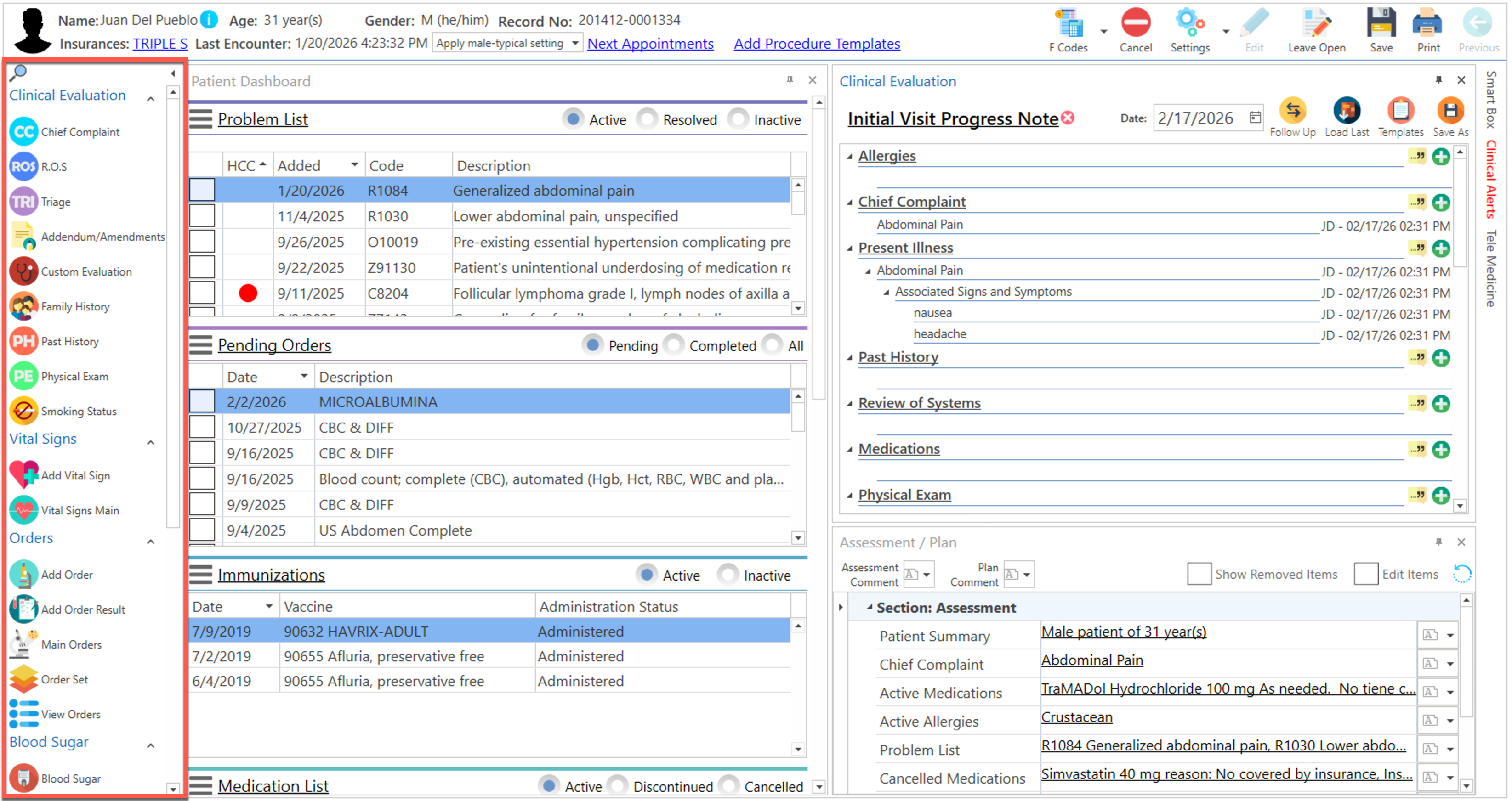 - Seleccione el paciente desde cualquier sección de la pantalla de "Clinical Records".