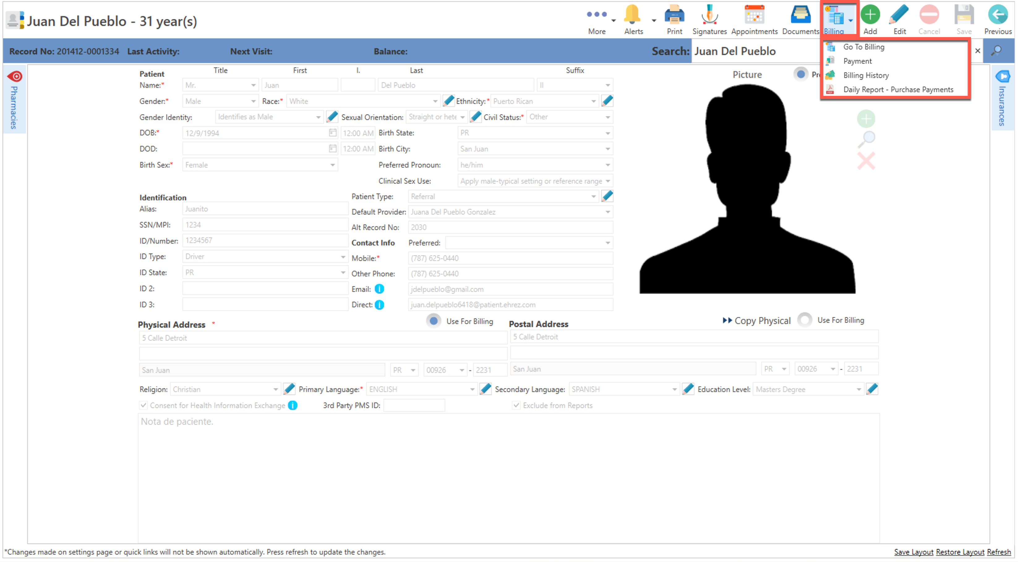 • Una vez seleccionado, presione el botón de "Billing", localizado en la parte superior de la pantalla.