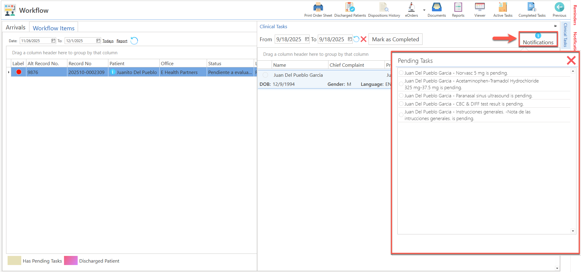 - Presione la pestaña de "Clinical Tasks", localizada en la parte derecha de la pantalla.