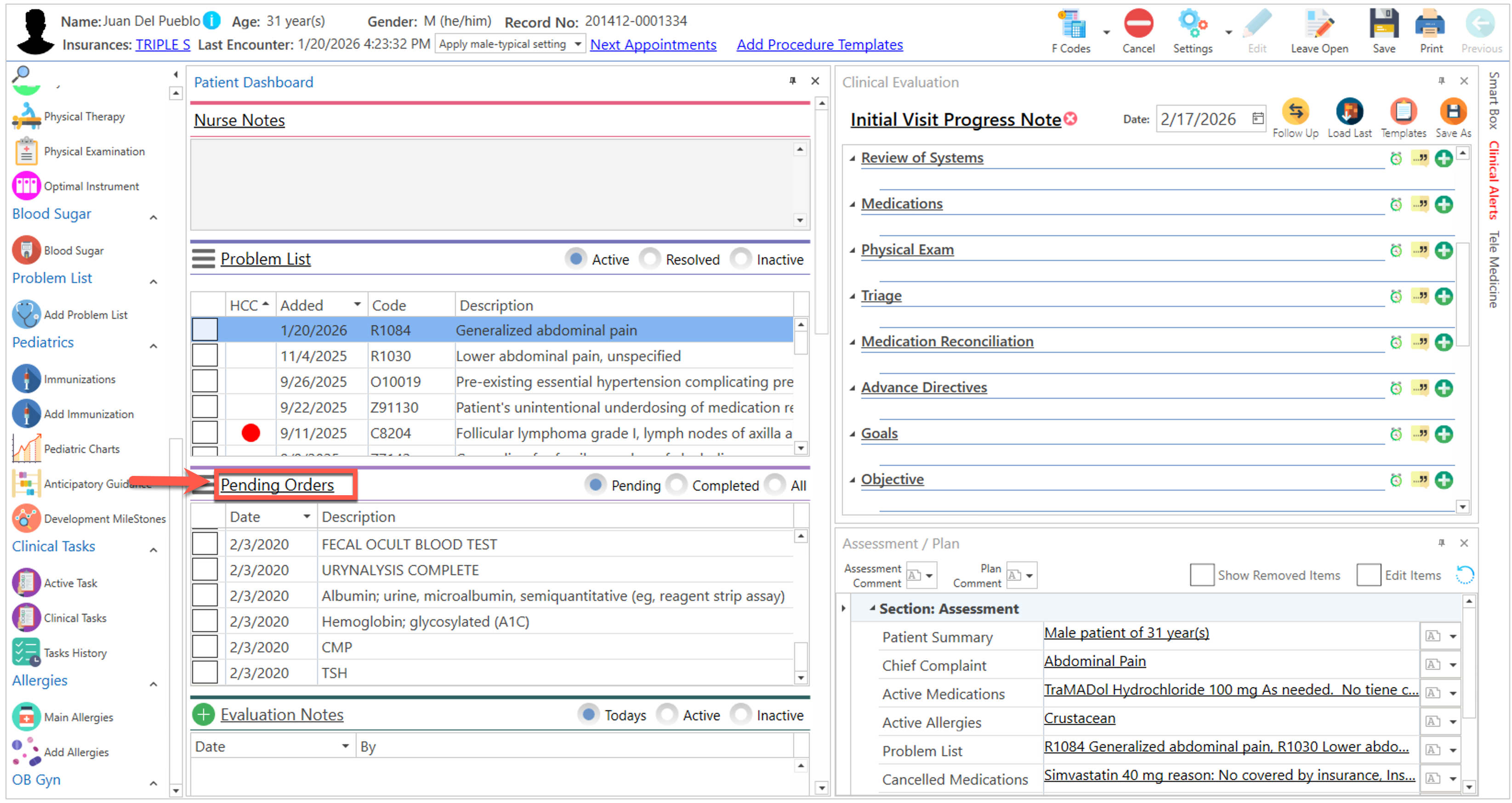 - Presione sobre el enlace de "Pending Orders", en la sección del "Patient Dashboard".