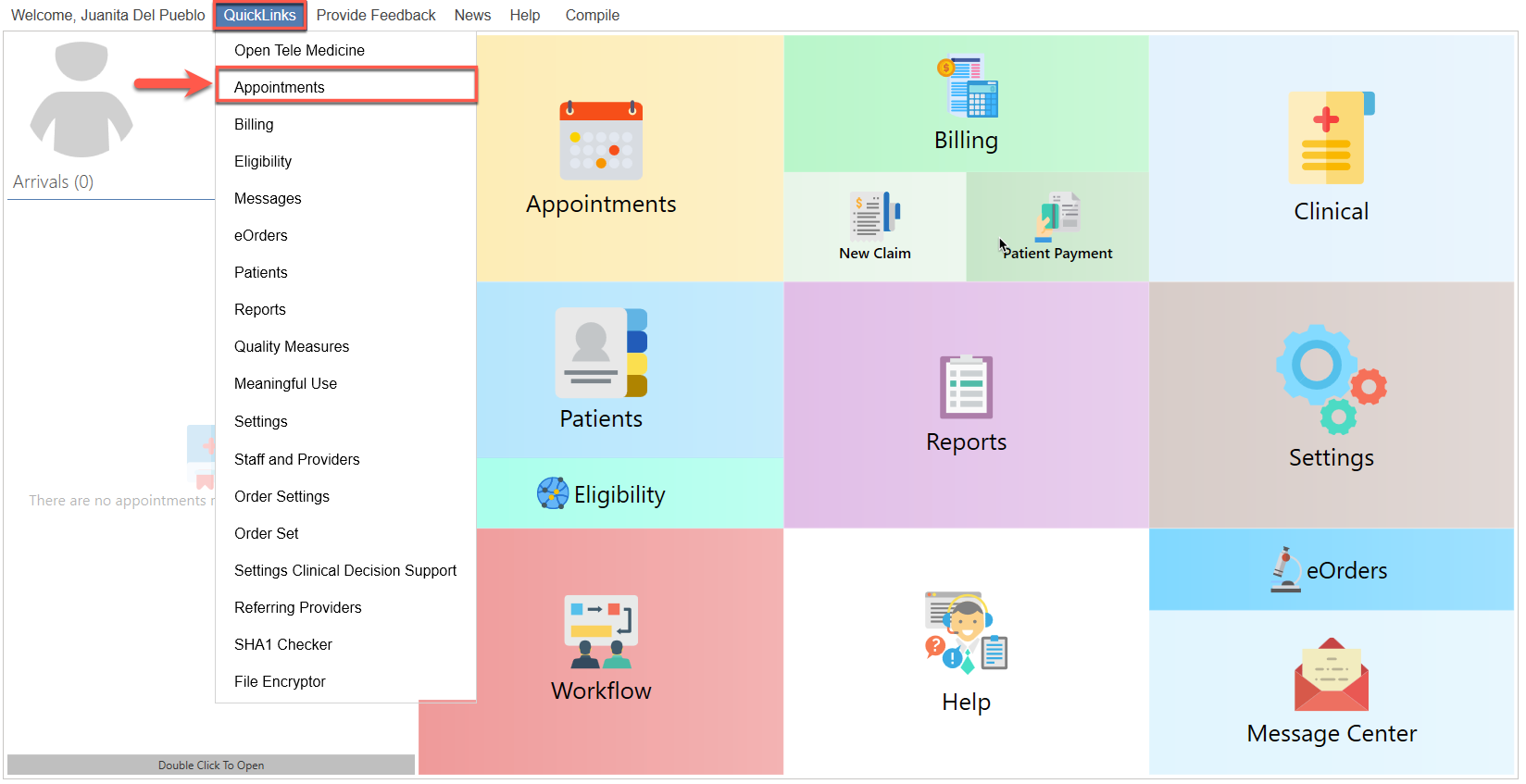 - Seleccione la opción de "Appointments".