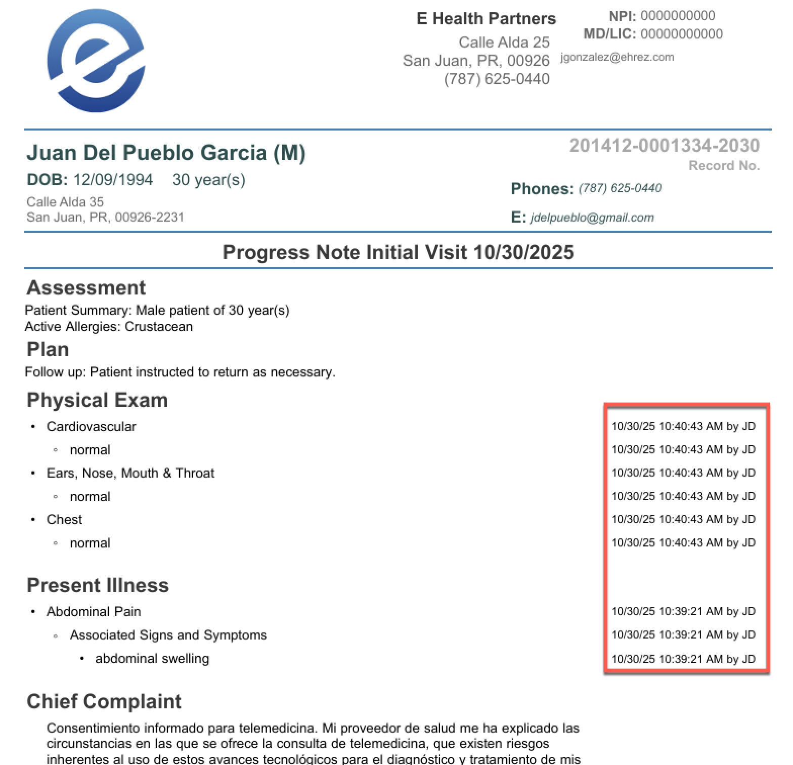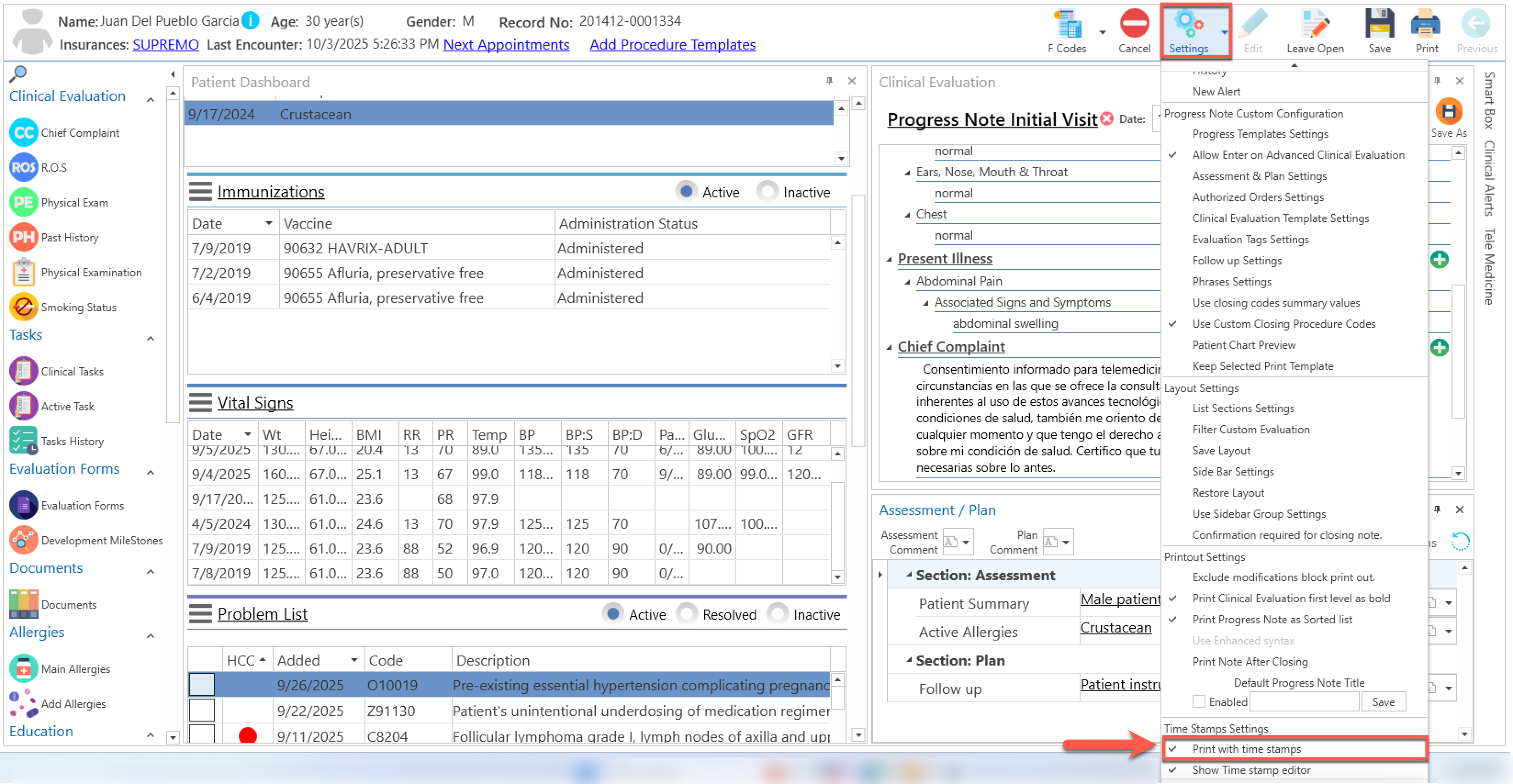 - Conociendo el área de: Advanced Progress Note / Print with time stamp