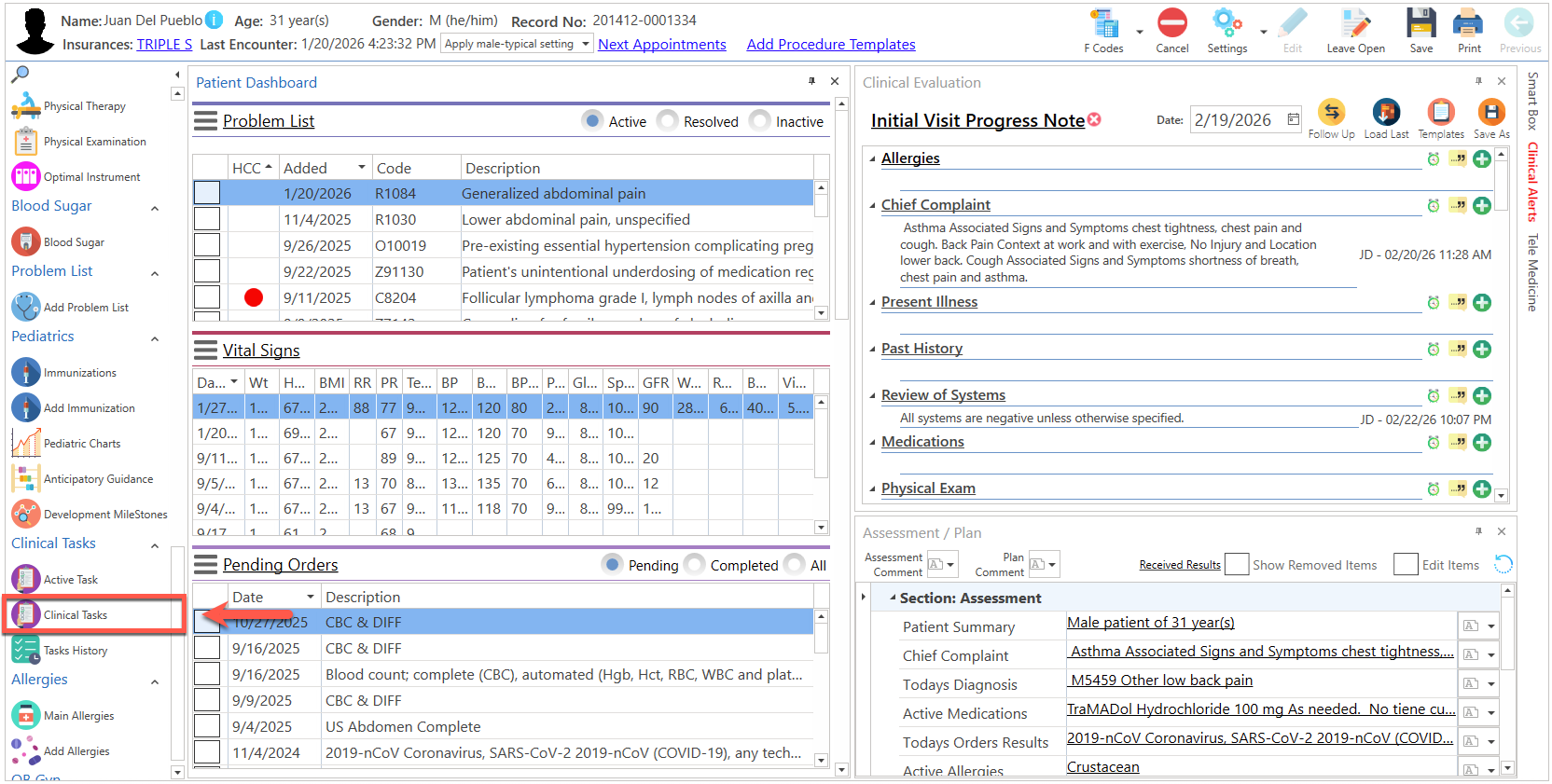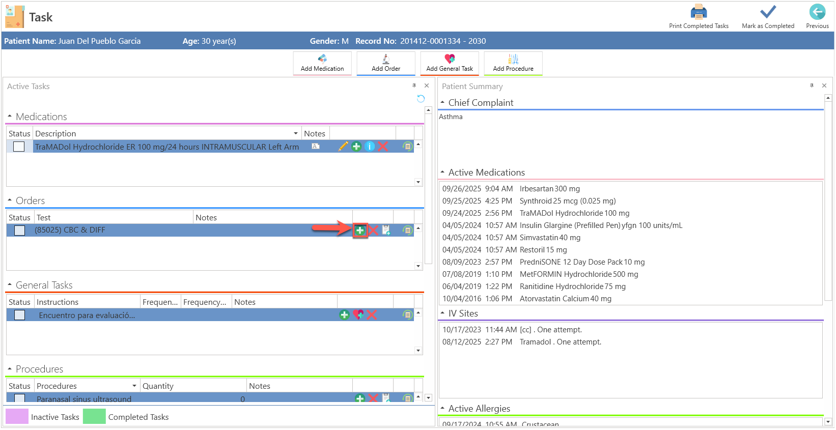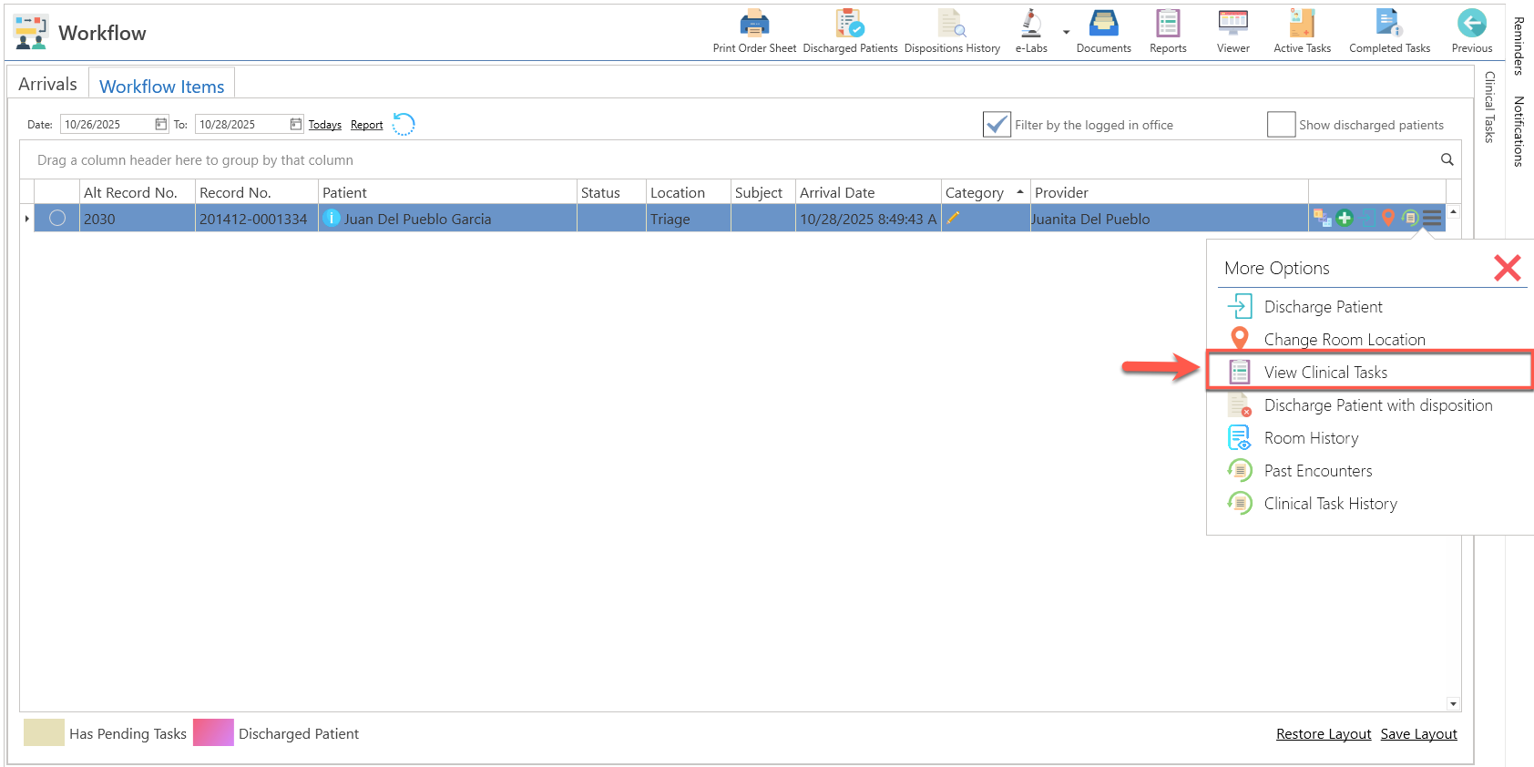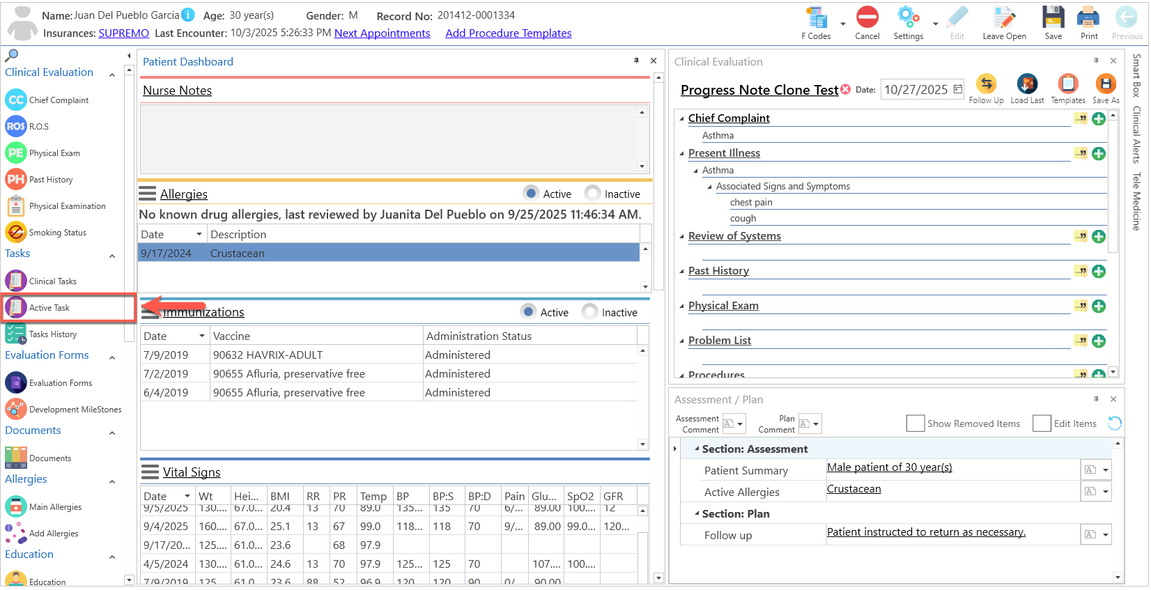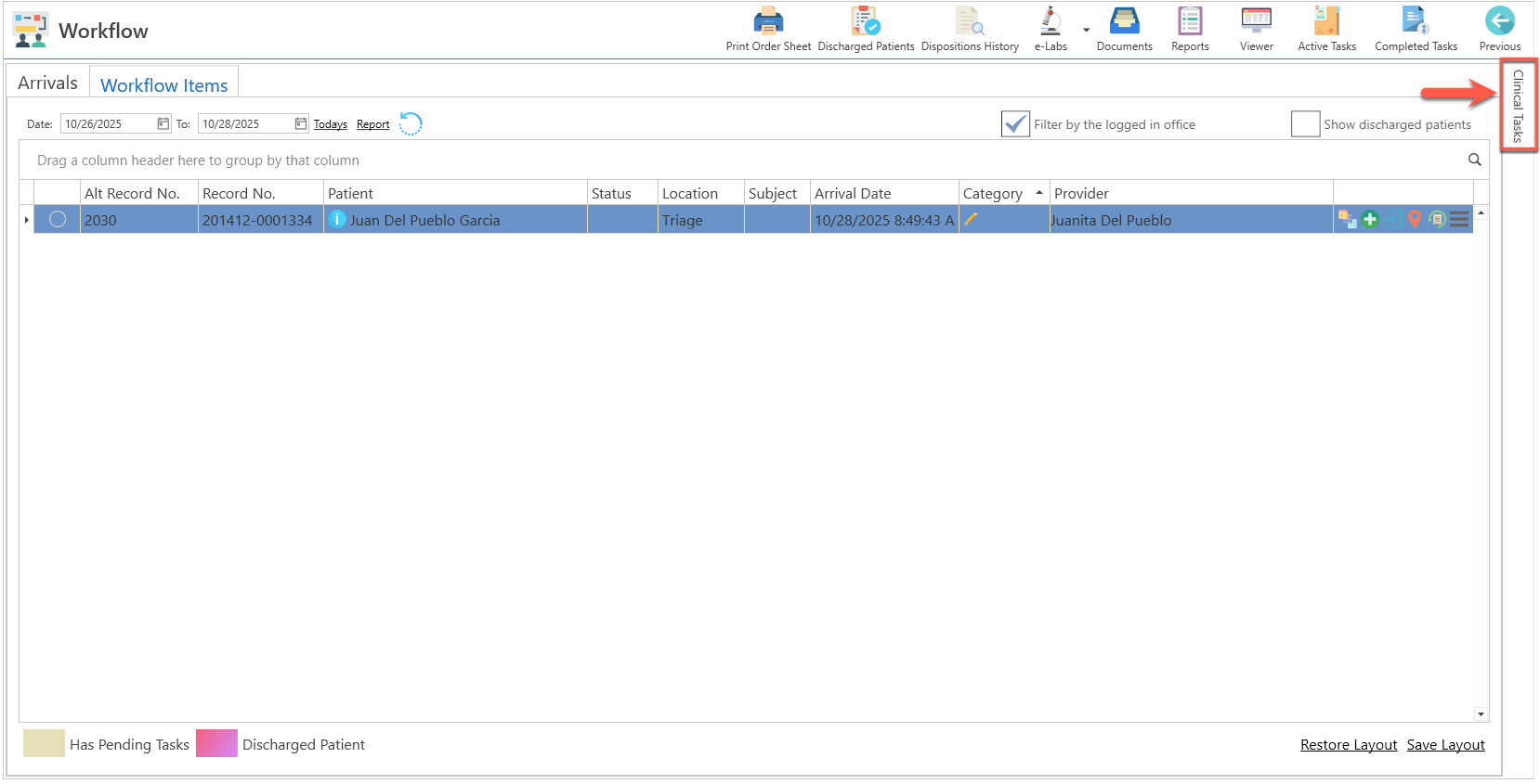 - Presione la pestaña de "Clinical Tasks", localizada en la parte derecha de la pantalla.