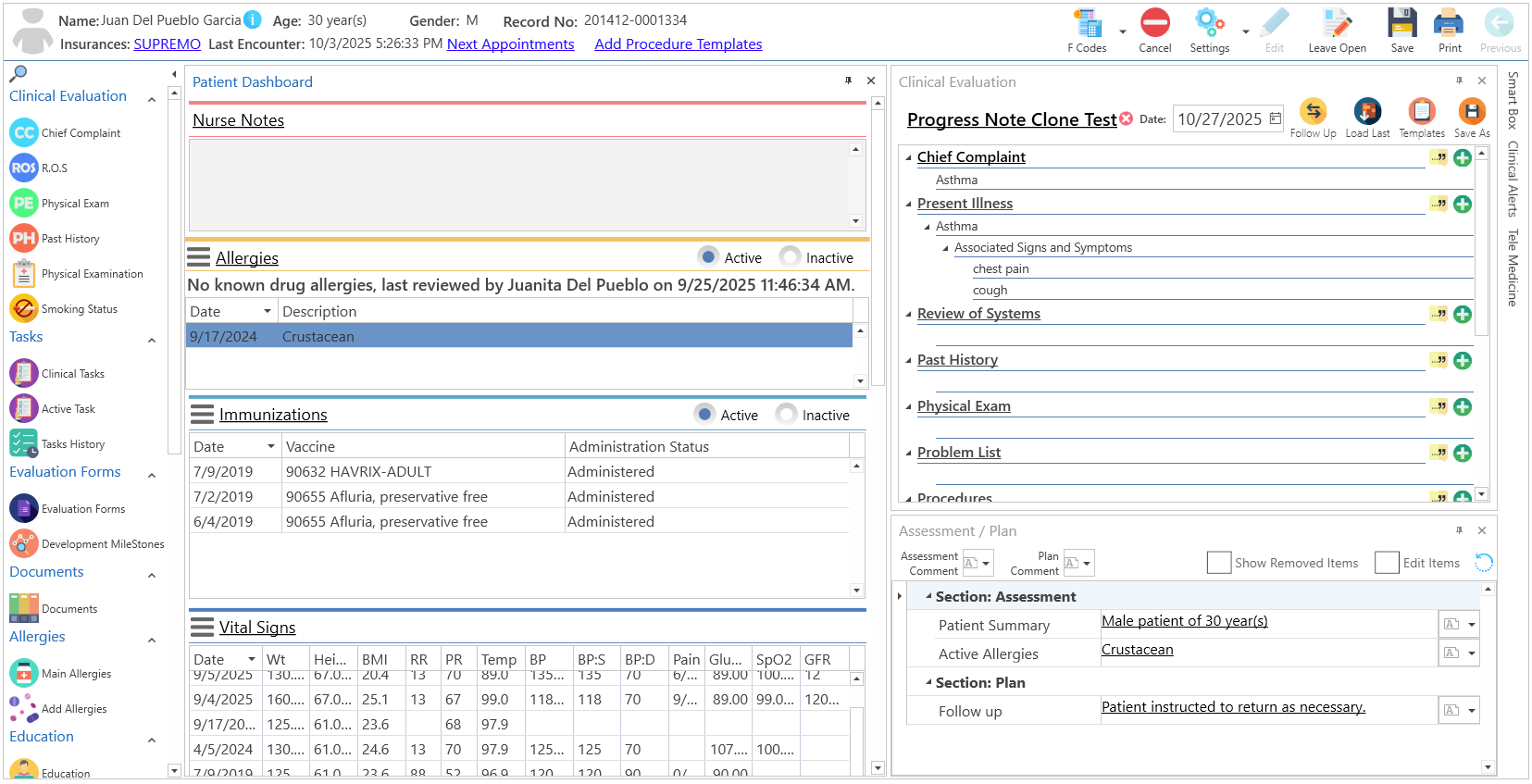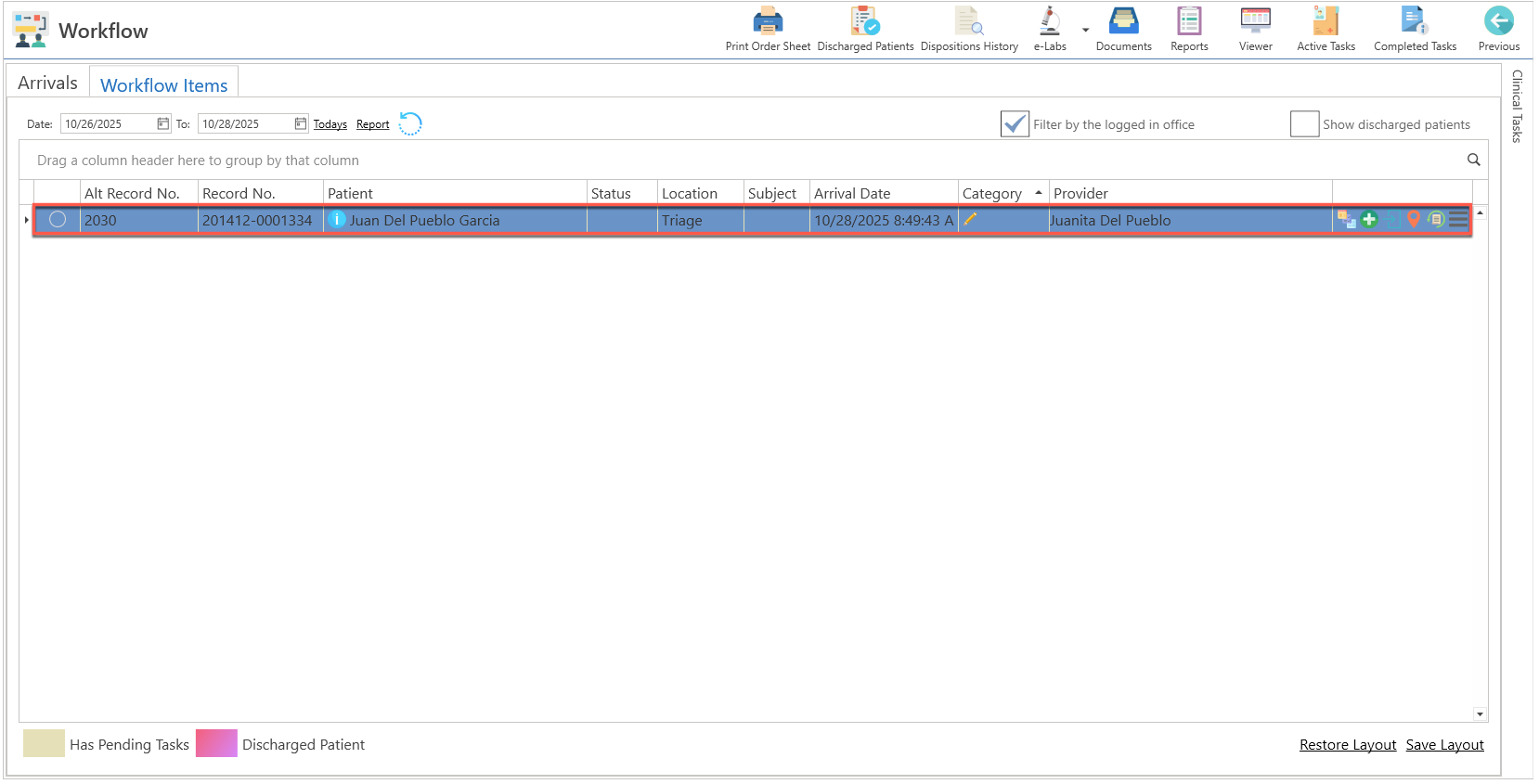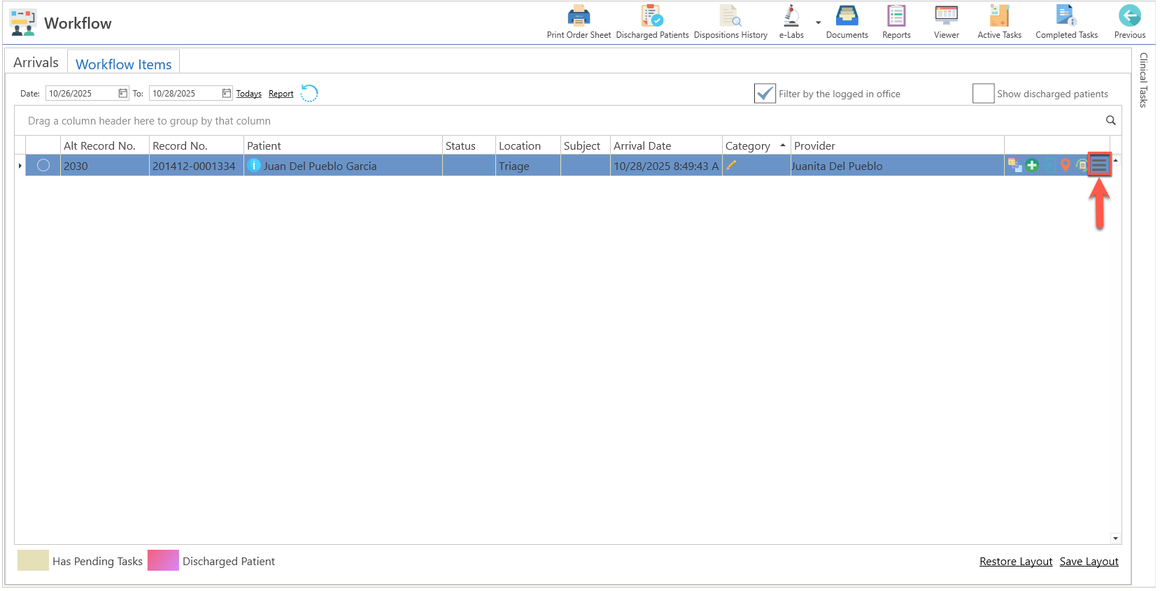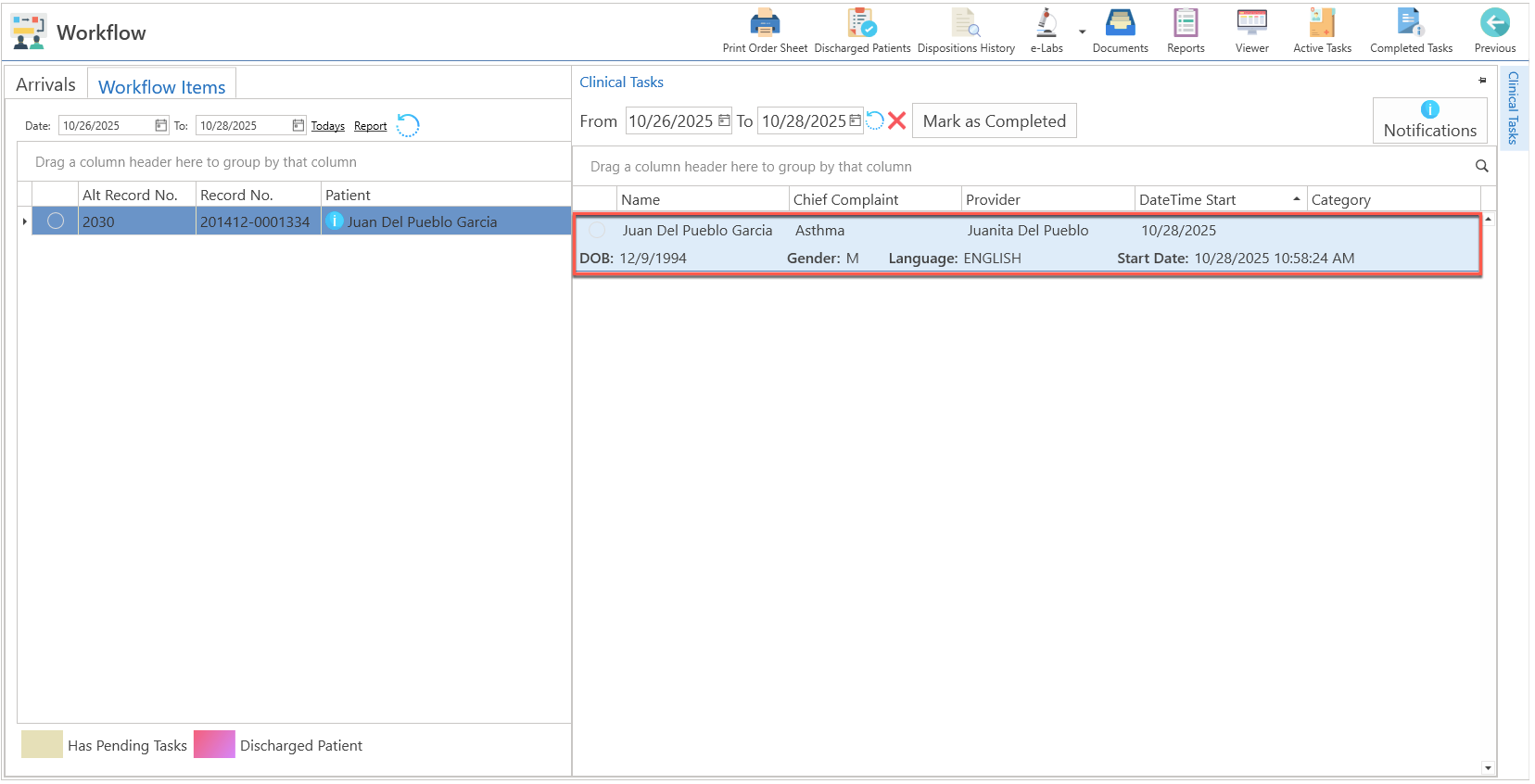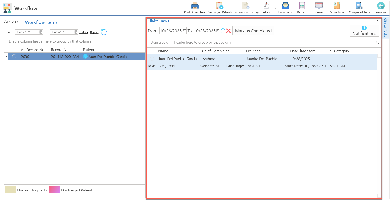 - Presione la pestaña de "Clinical Tasks", localizada en la parte derecha de la pantalla.