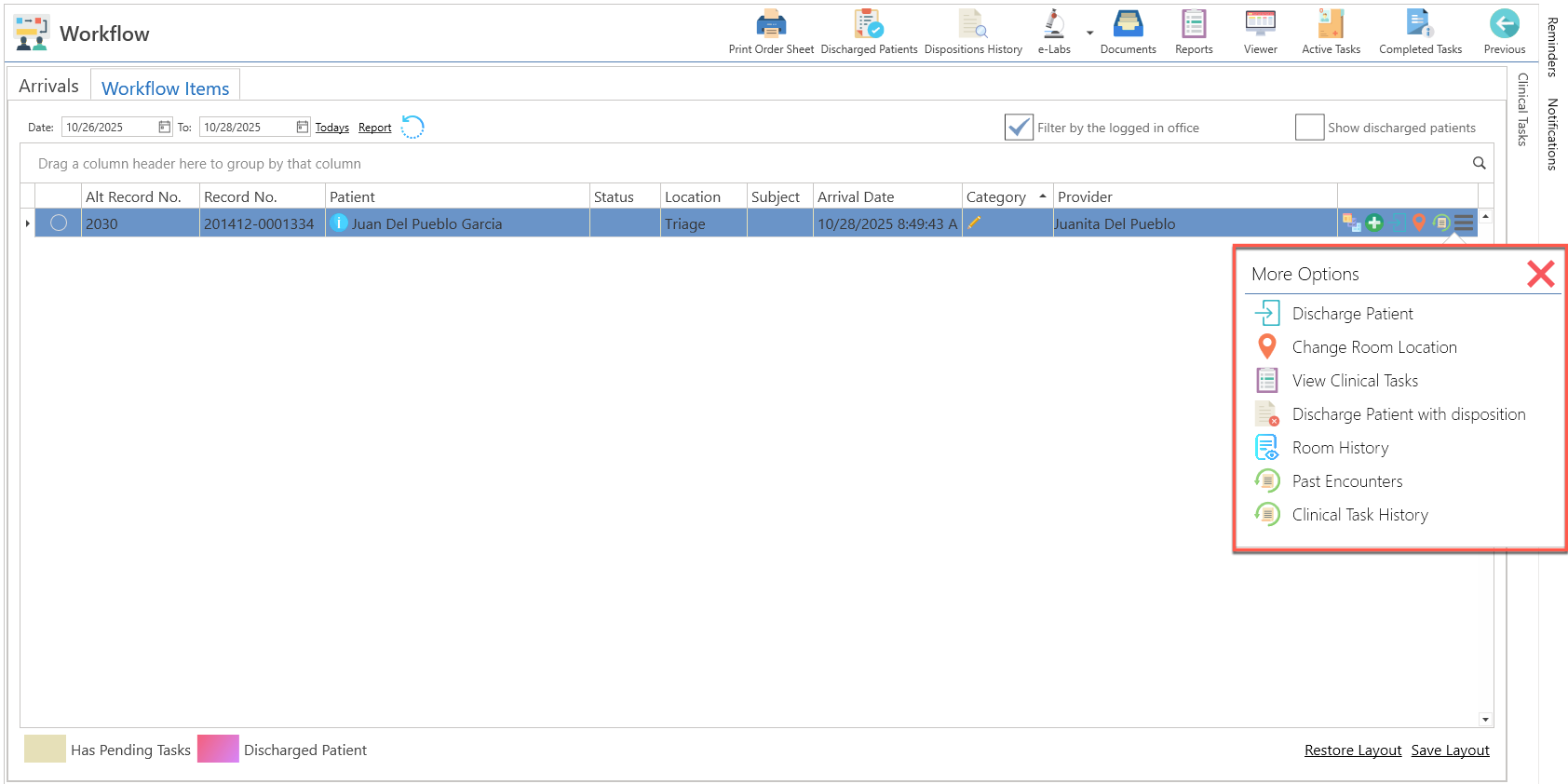 - Presione el botón de "More Options", localizado al final de la línea del paciente.