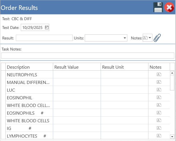 Registre el resultado de la orden y su unidad y luego, presione el botón de "Save".