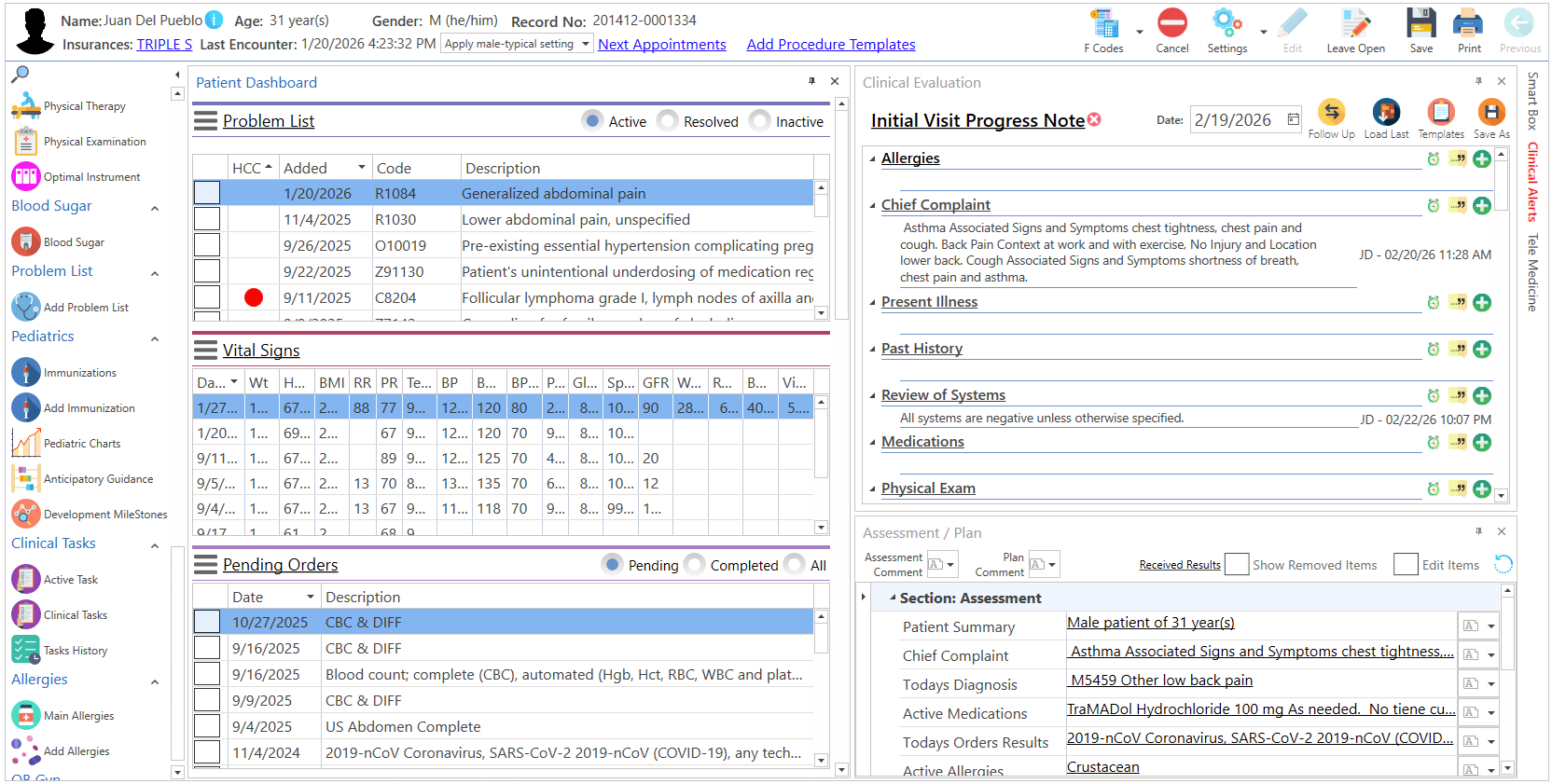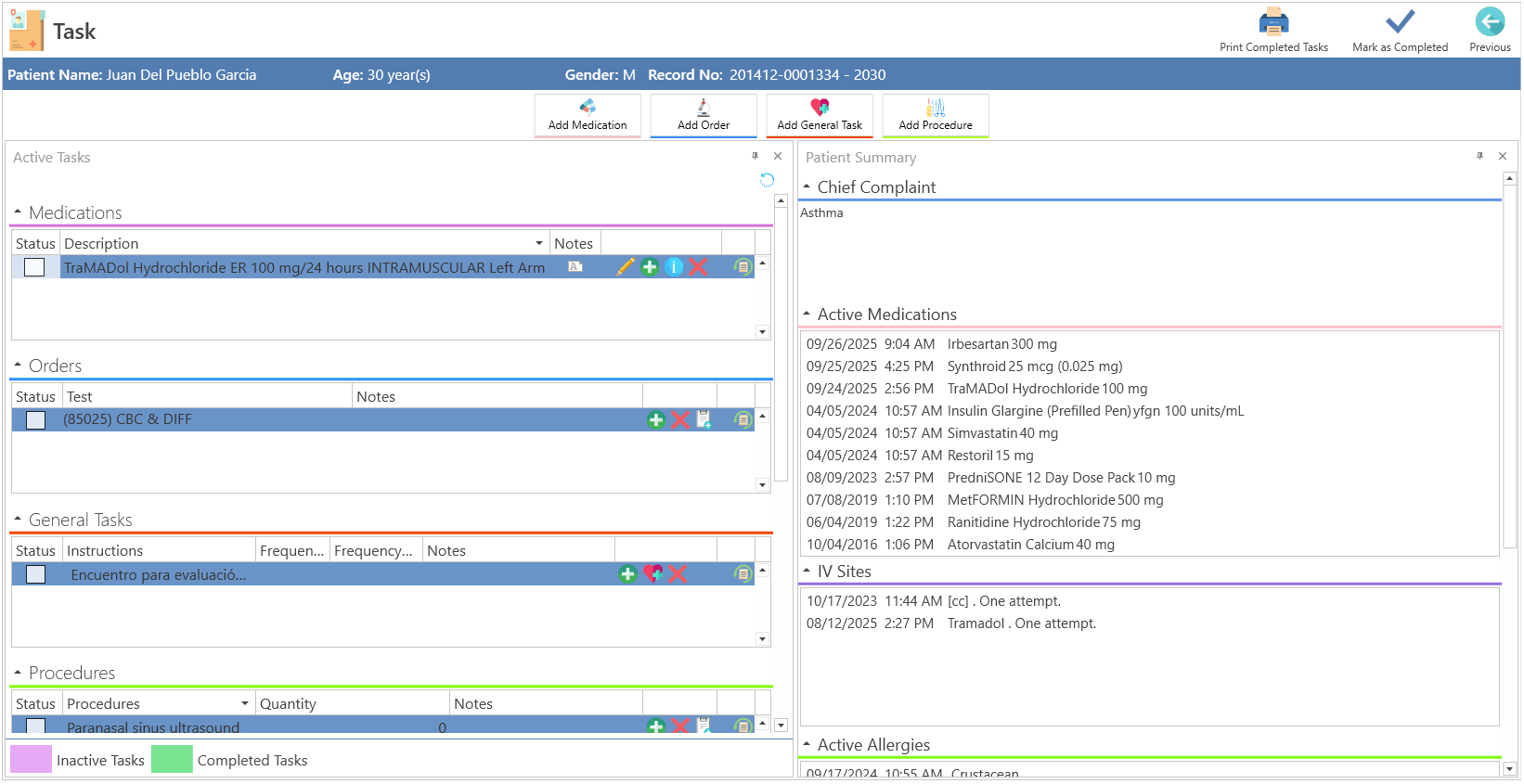 - Abra la nota del paciente, que presente tareas clínicas pendientes asignadas.