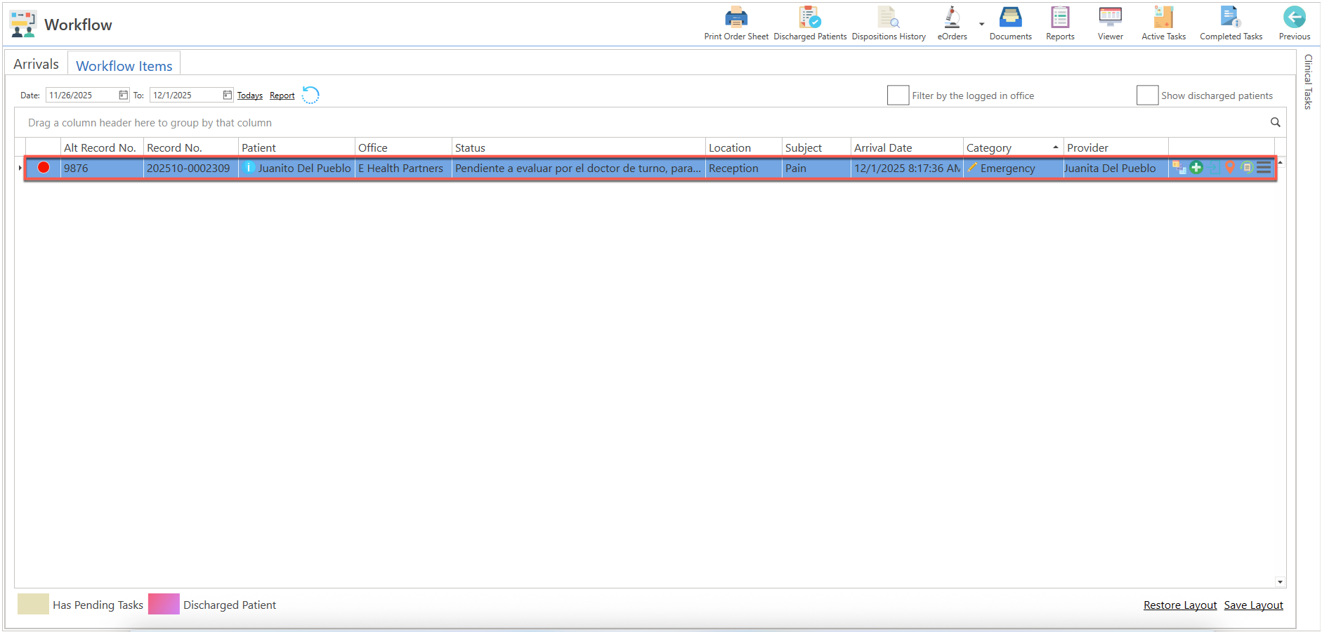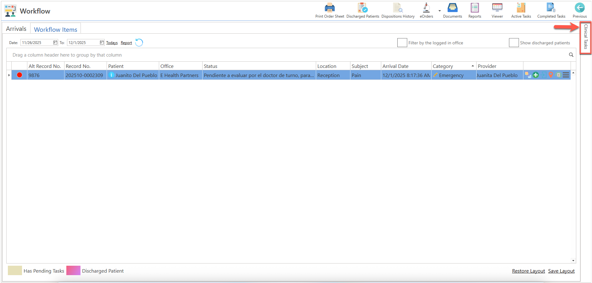 - Seleccione la opción de "View Clinical Tasks".