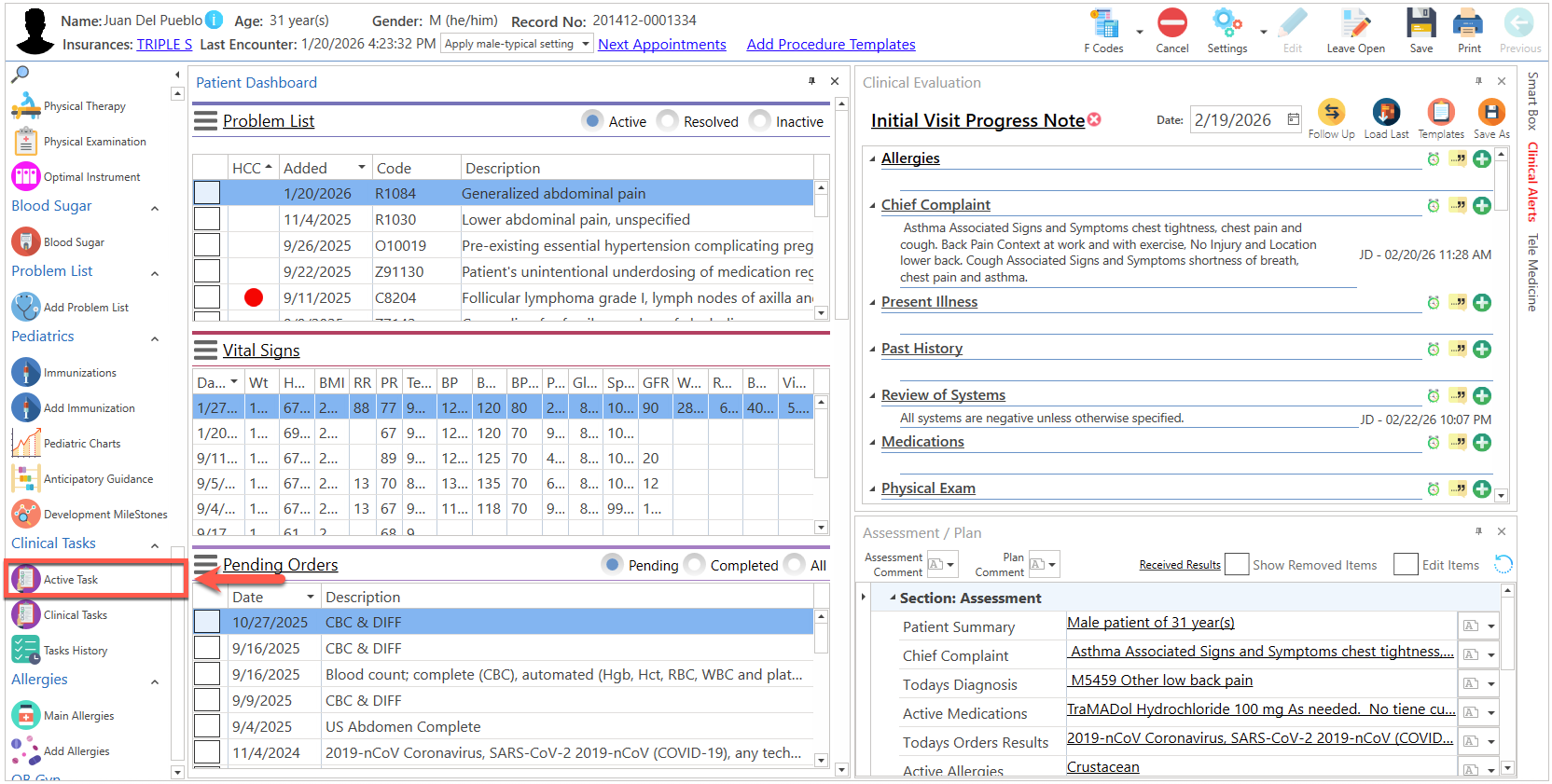 - Presione la pestaña de "Clinical Tasks", localizada en la parte derecha de la pantalla.