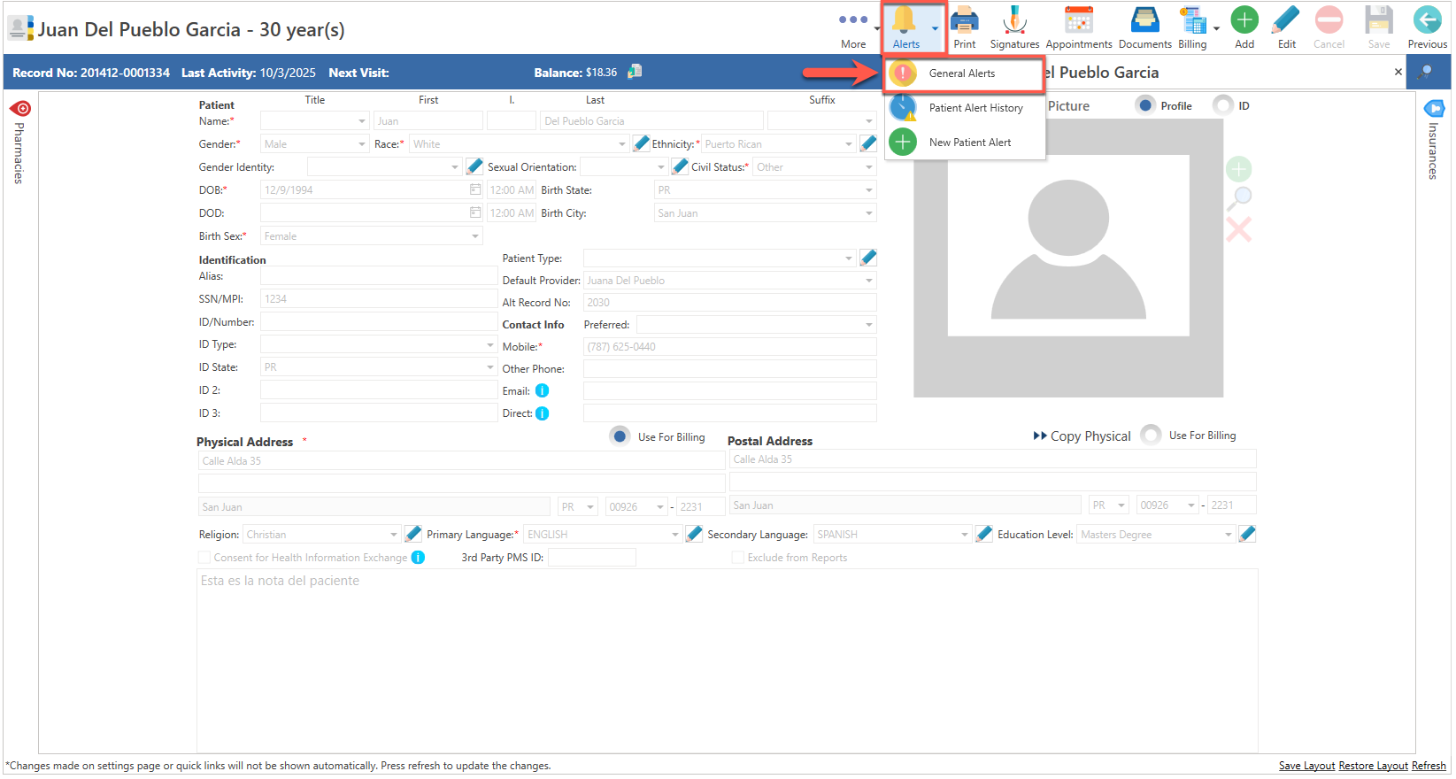 - Conociendo el área de: Patients / Alerts / General Alerts