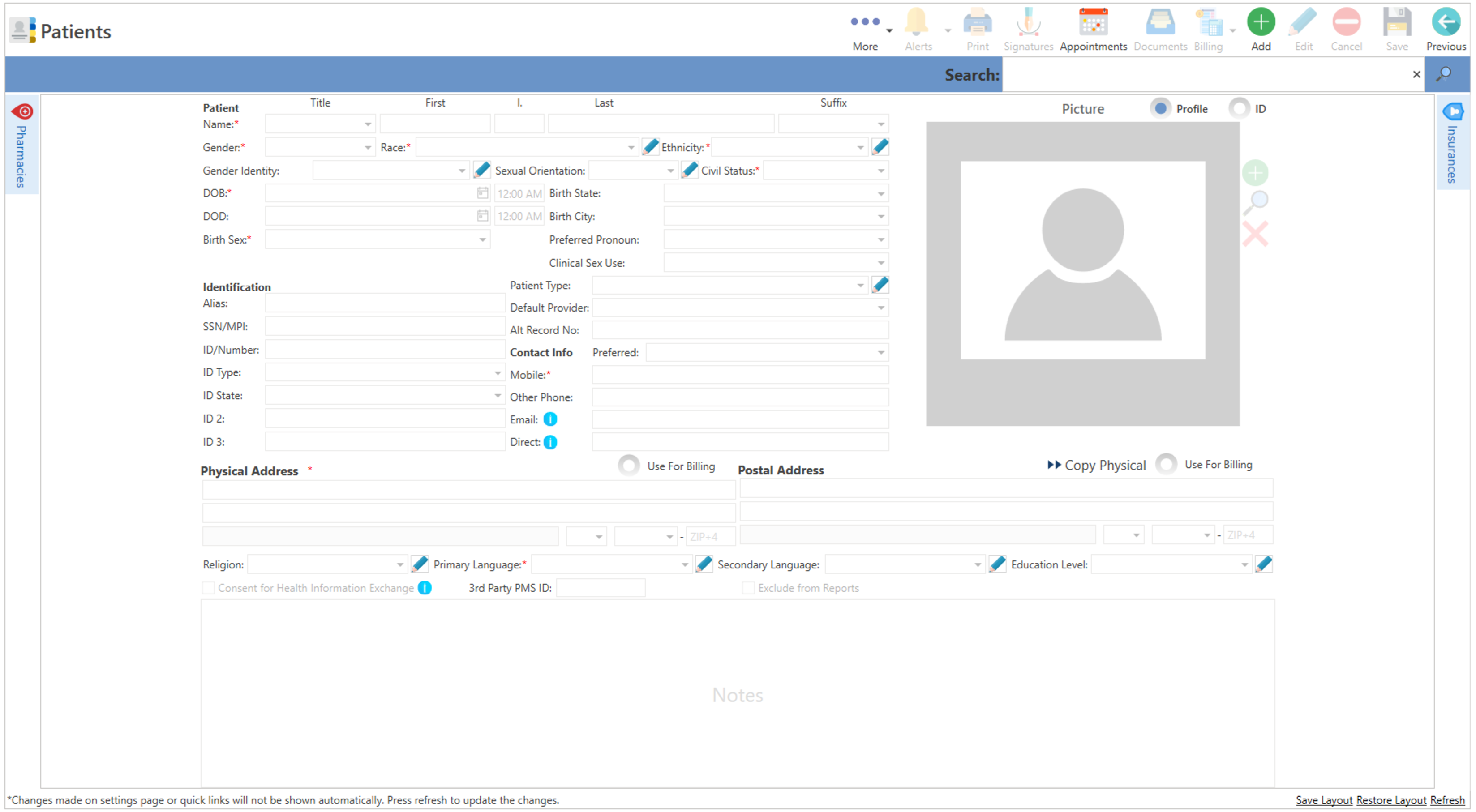 - Patient Detail: Despliega la pantalla demográfica del paciente seleccionado. De no haber paciente seleccionado, desplegará la misma en blanco.