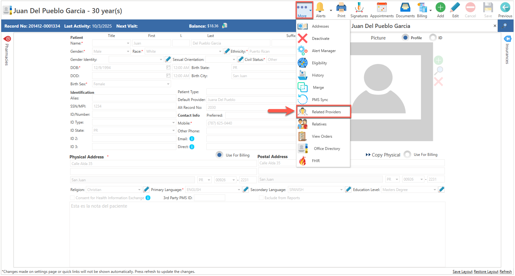 Existen varias opciones, para editar un proveedor, relacionado al paciente.