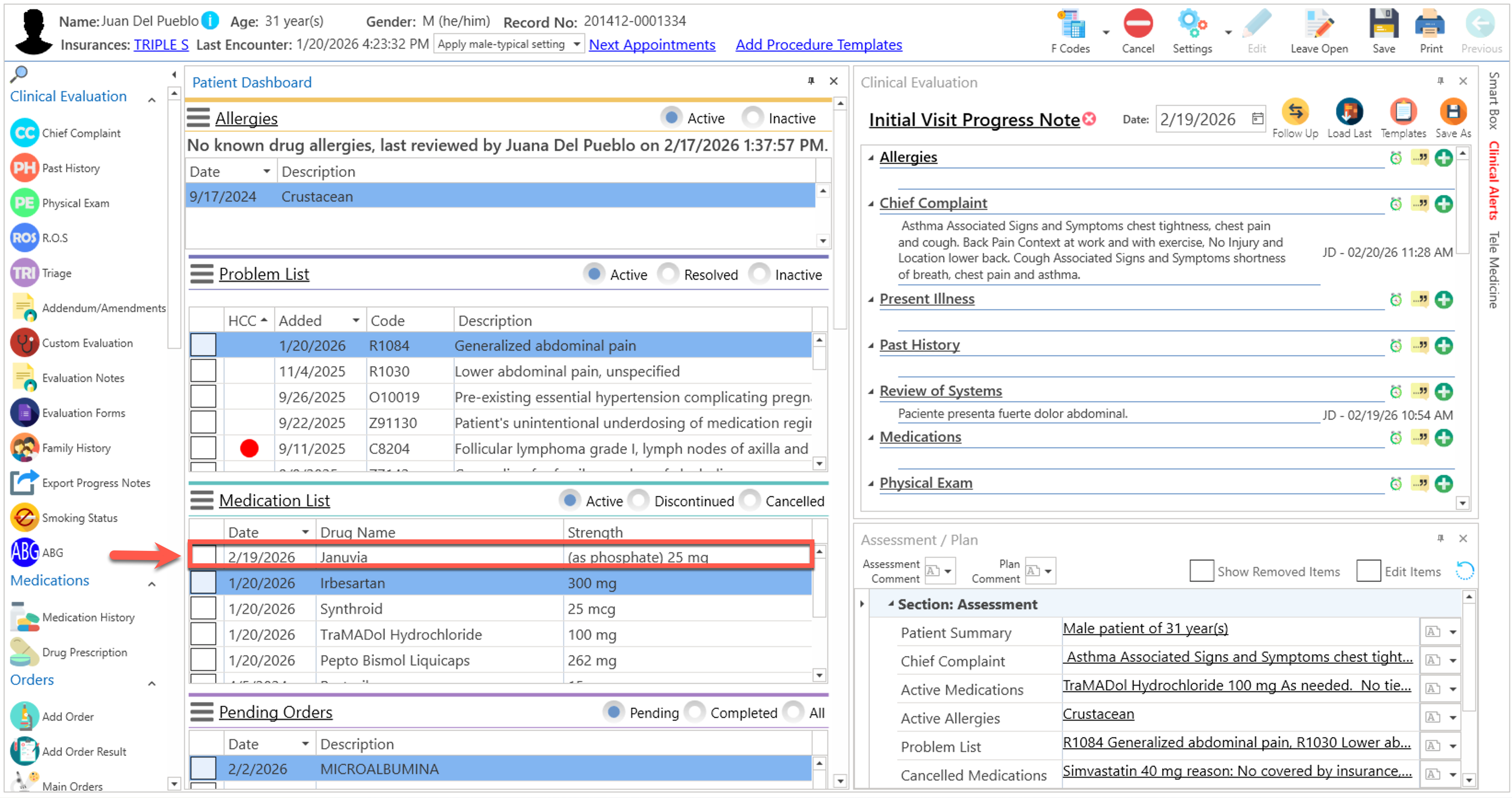 - Automáticamente, se desplegarán los medicamentos en la pantalla de "Advanced Progress Note", en la sección de "Medication List", en el panel del "Patient Dashboard".