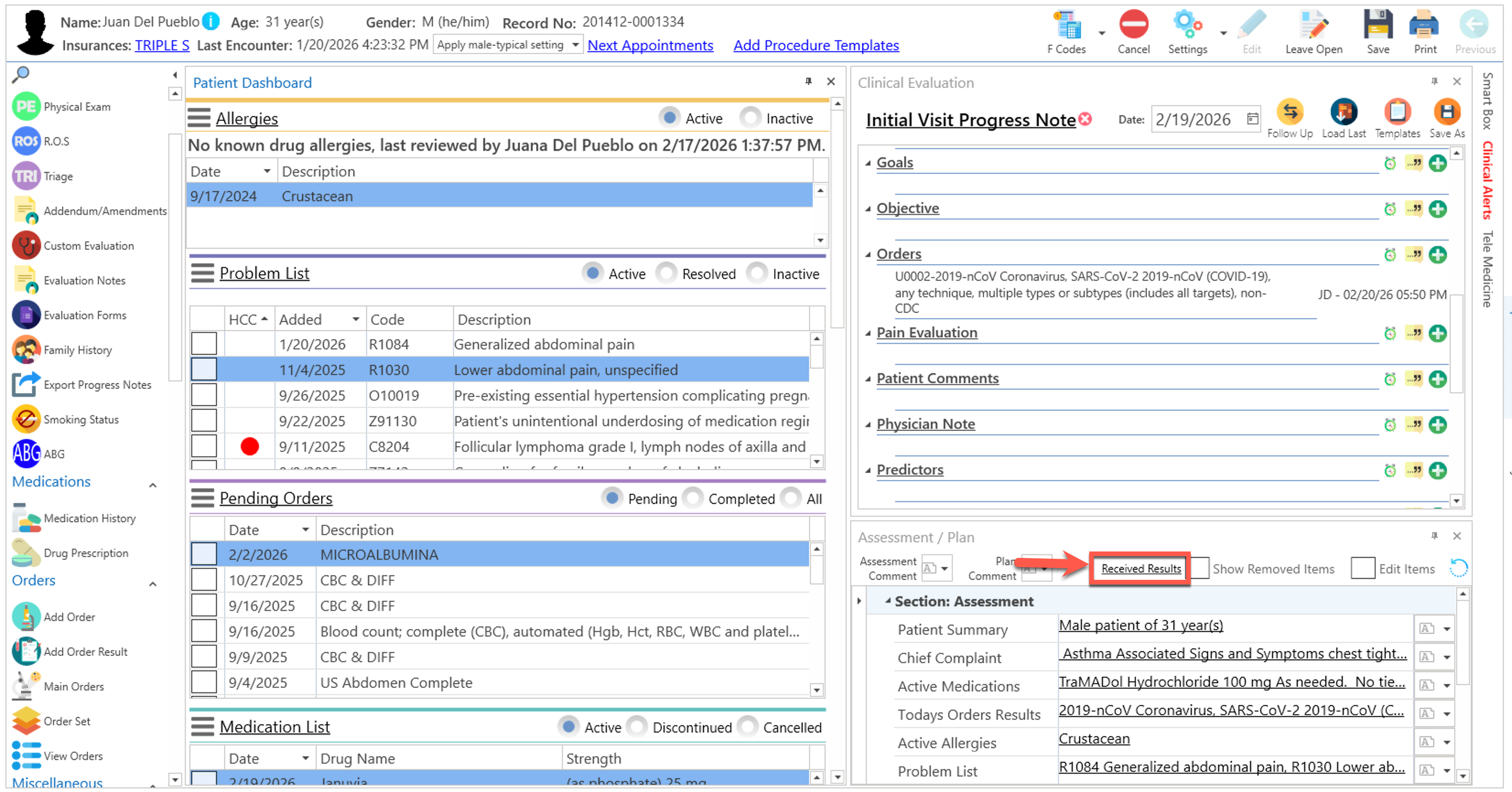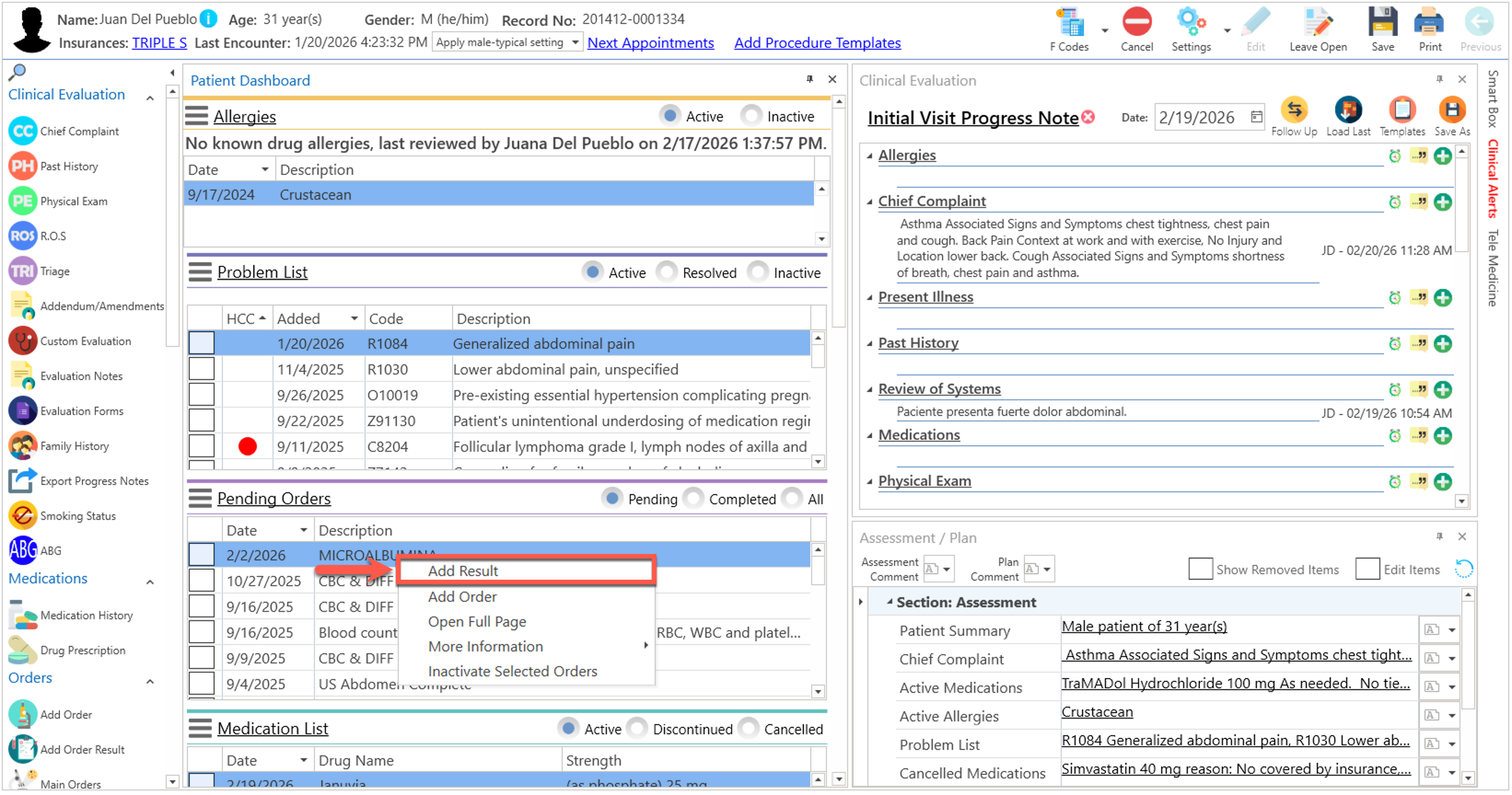 - Automáticamente, se desplegará el enlace de los resultados en la sección del "Assessment y Plan".