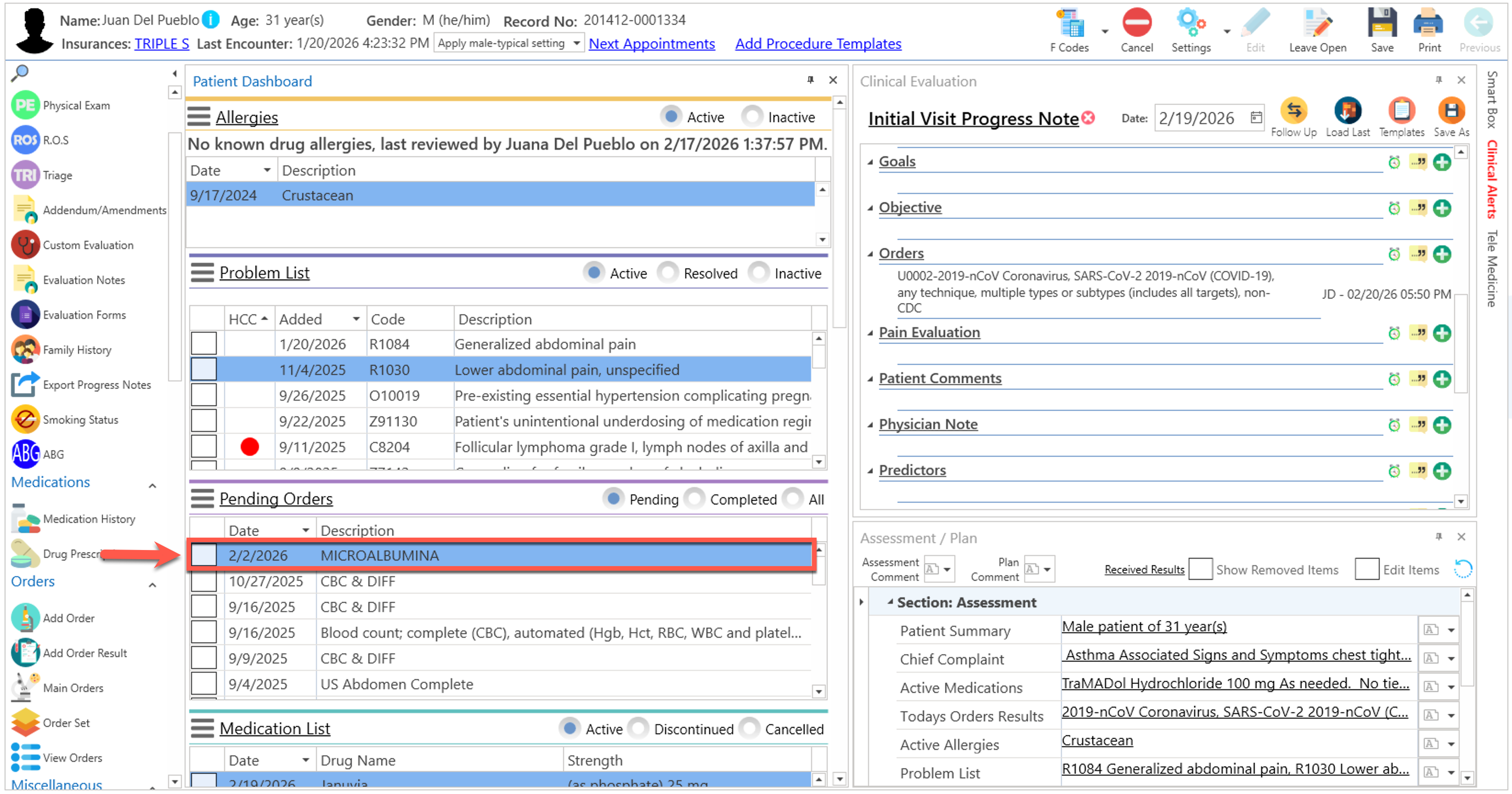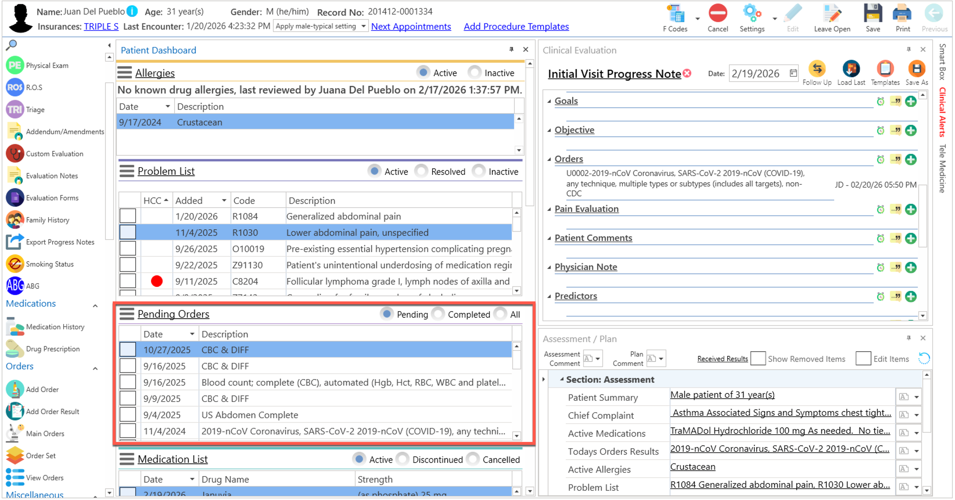 - Presione el enlace de "Pending Orders", localizado en la sección del "Patient Dashboard".