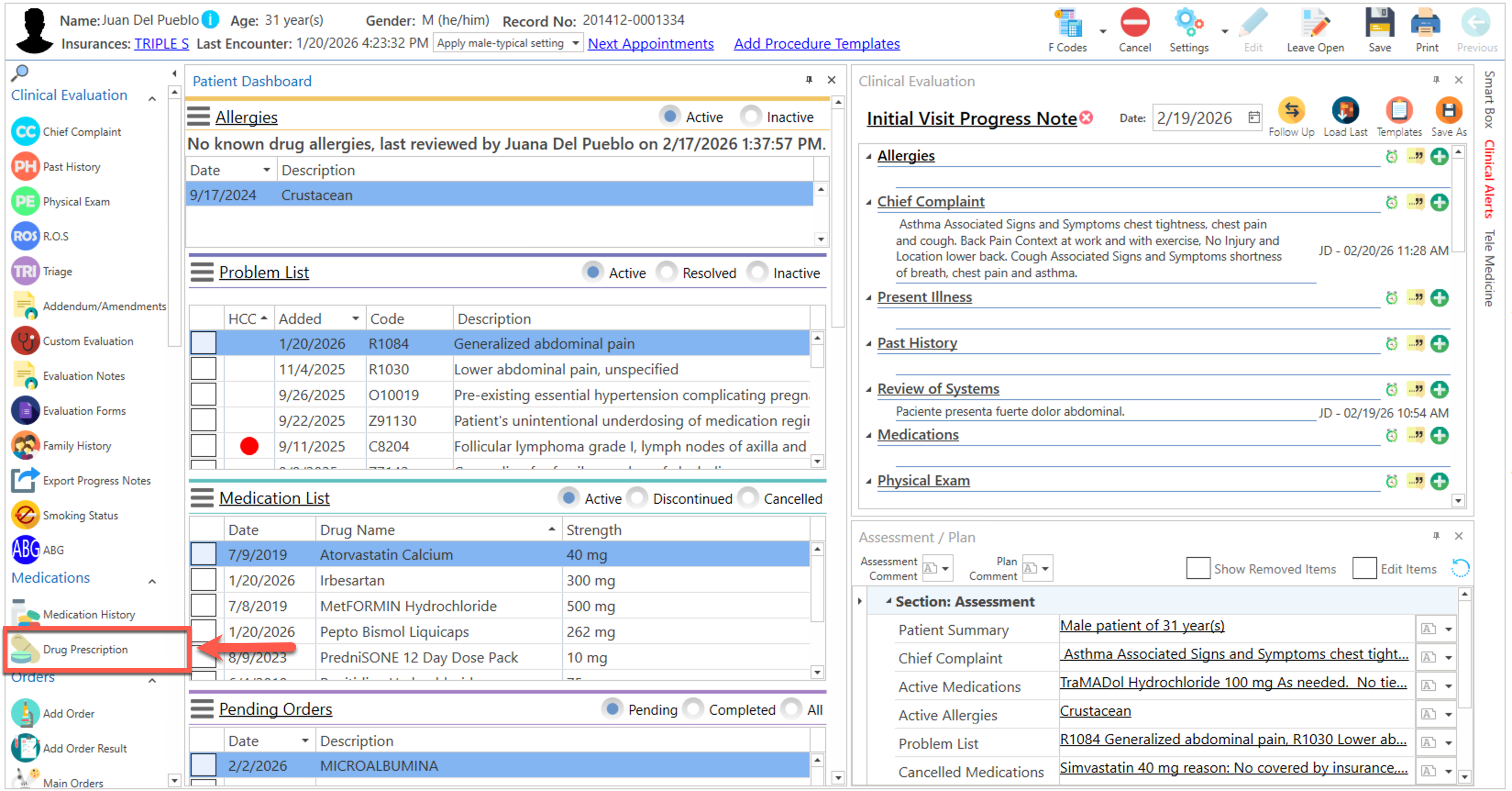 - Presione el botón de "Drug Prescription", localizado en la sección del "Side Bar".