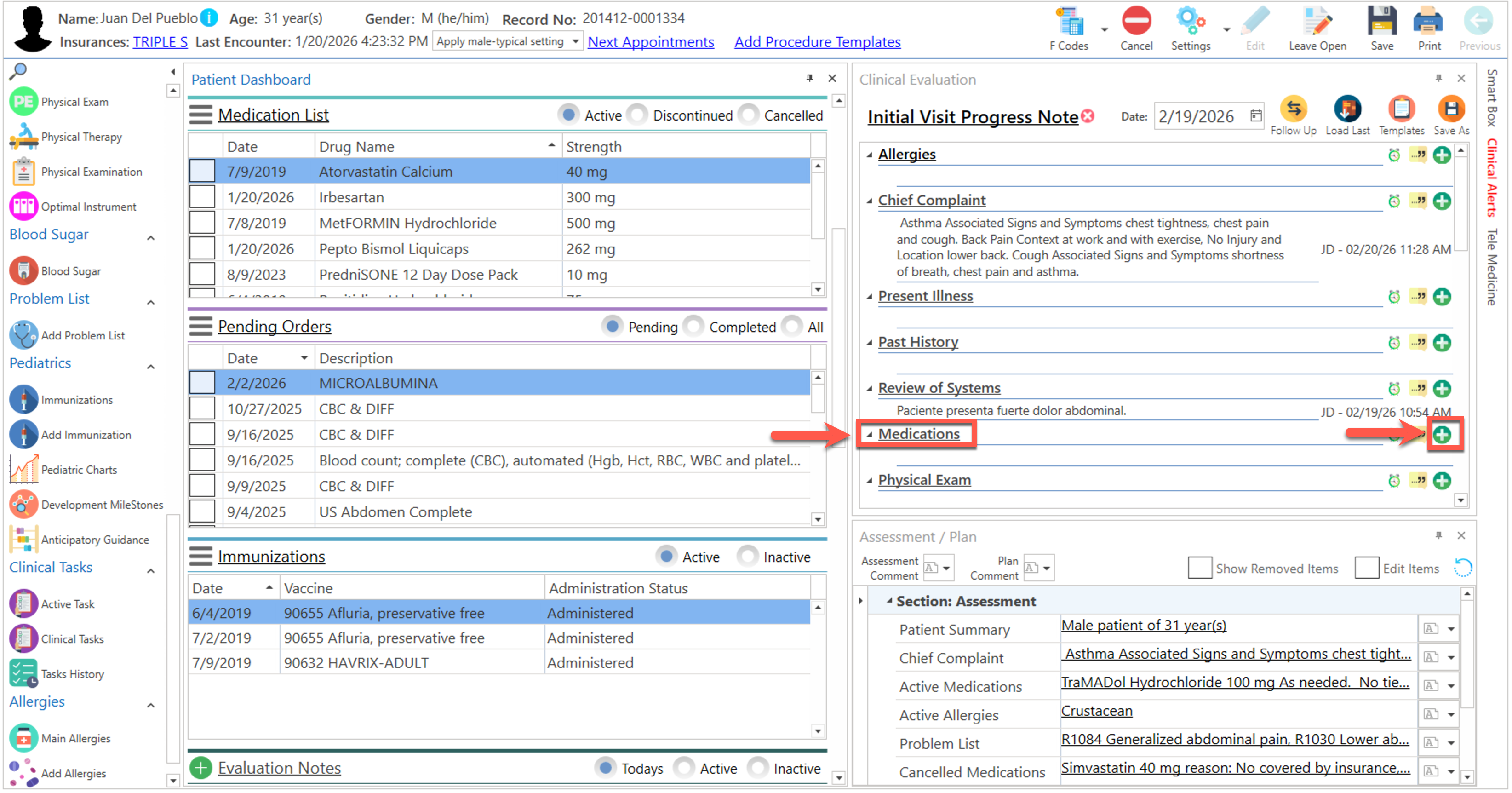 - Conociendo el área de: Advanced Progress Note / Medications / Patient Chart