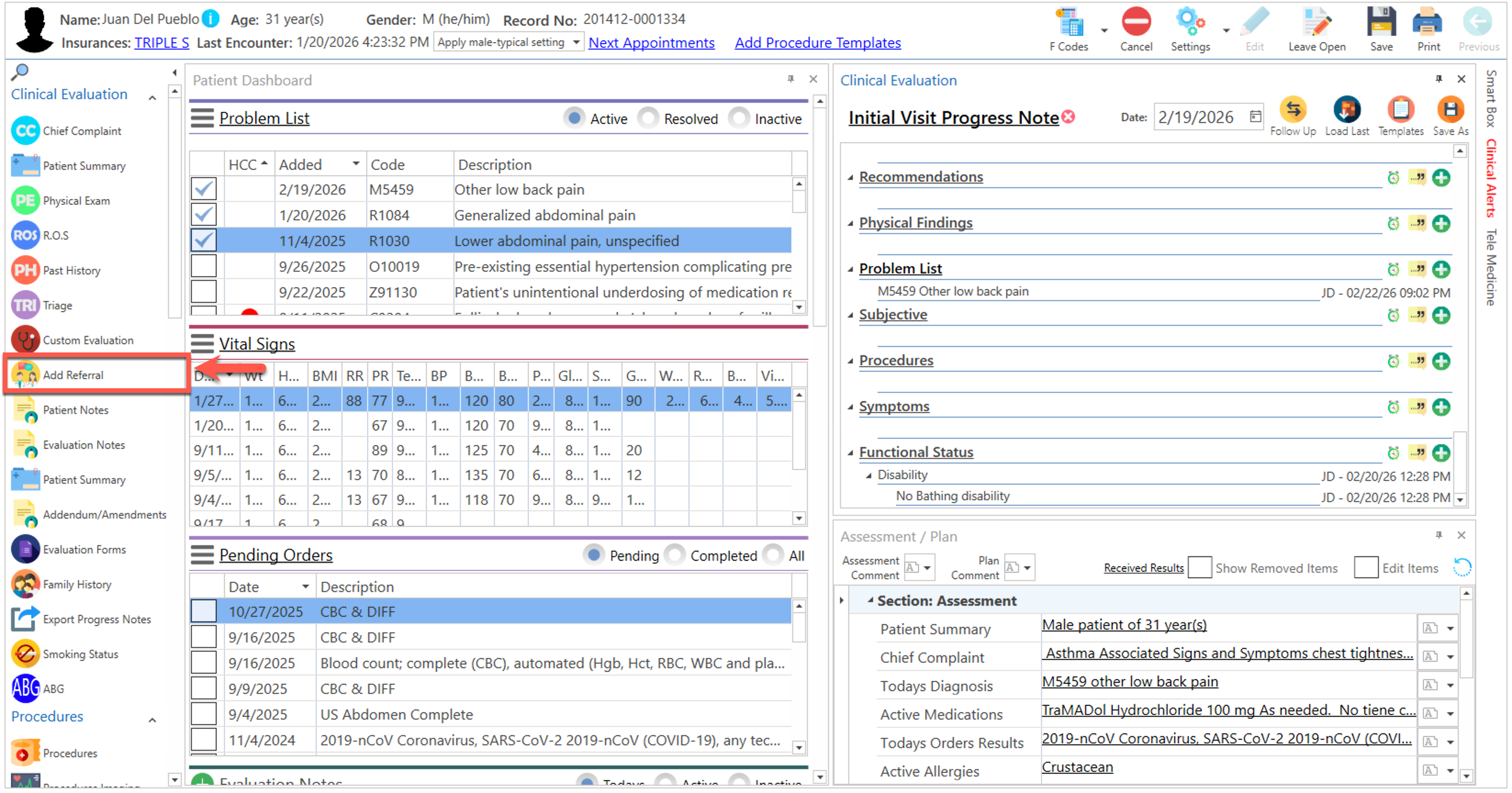 - Presione el botón de "Add Referral", localizado en la sección del "Side Bar".