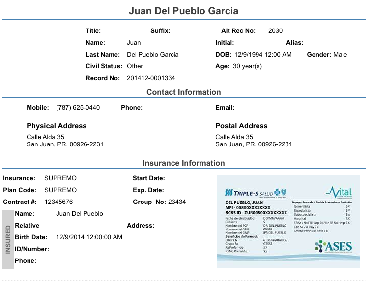 - Automáticamente, se desplegará el reporte demográfico del paciente, para ser impreso.