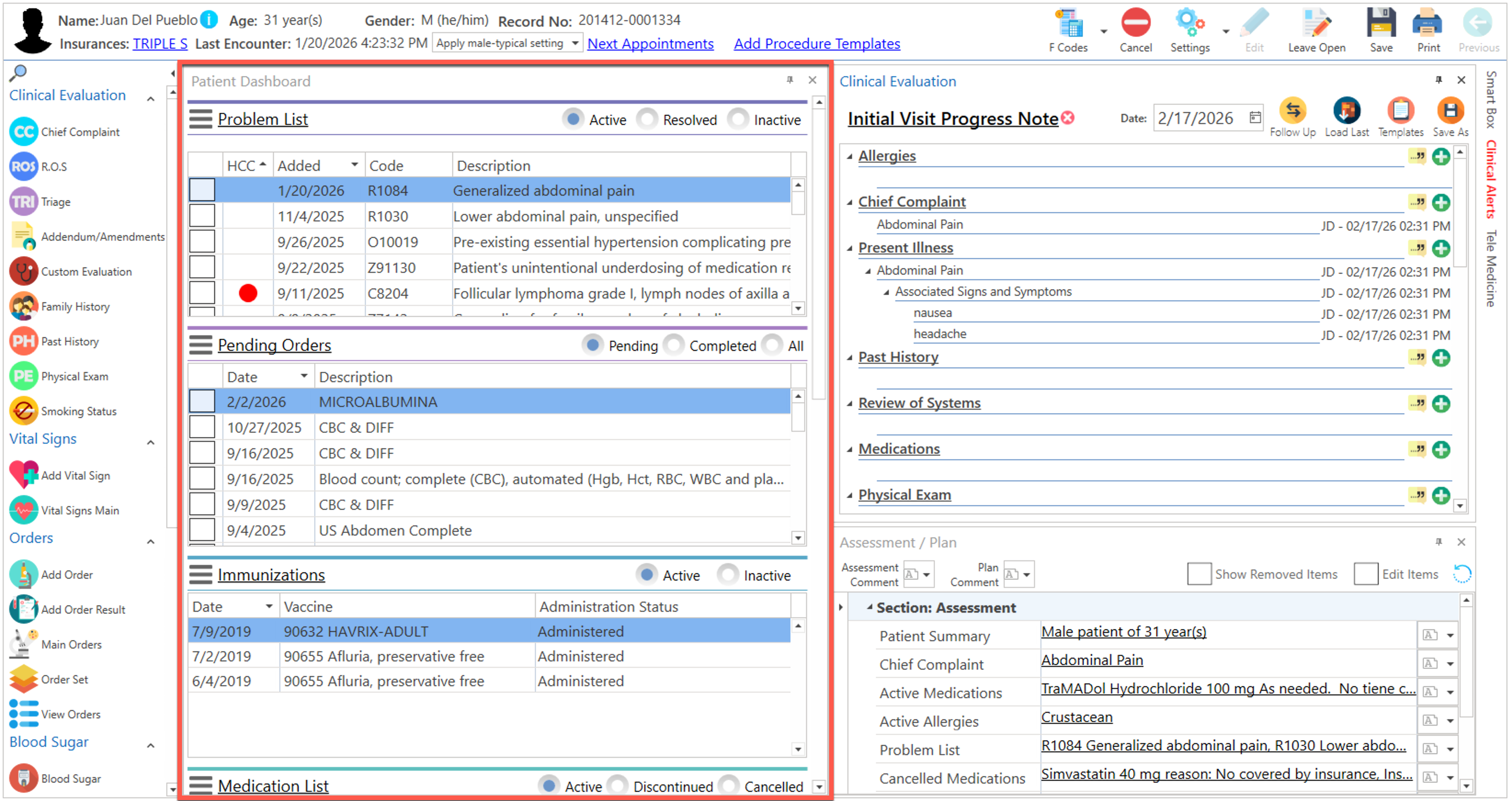 - Seleccione el paciente desde cualquier sección de la pantalla de "Clinical Records".