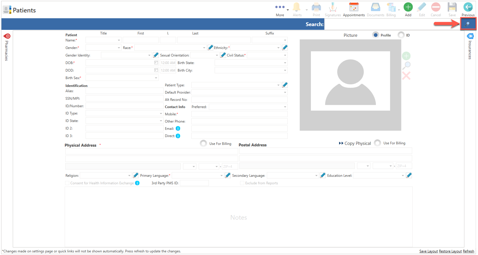 - Presione el botón de "Patient Details", localizado en la sección del "Side Panel", en la pantalla de "Appointments".