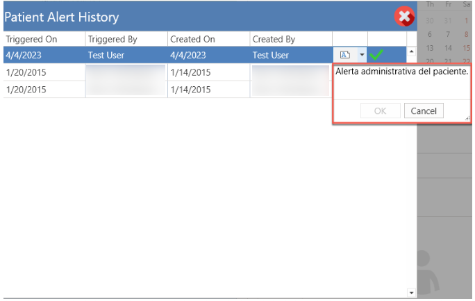 - Presione el botón de "Alerts", localizado en la parte superior de la pantalla y seleccione la opción de "Patient Alert History".
