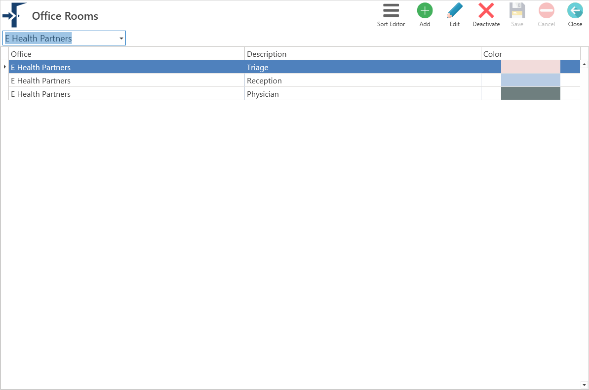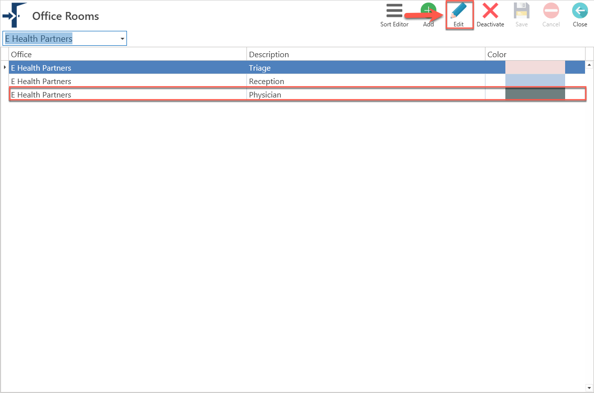 Seleccione el cuarto de la oficina o centro que desea editar.