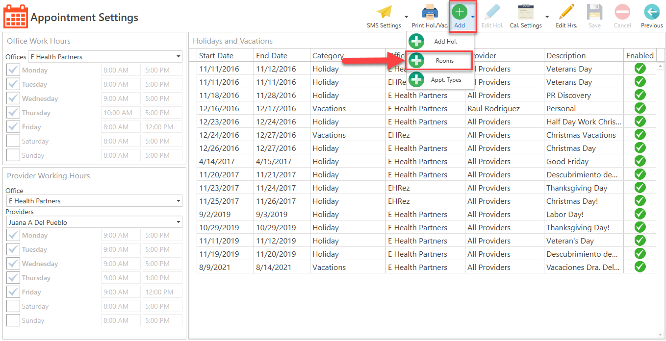 - Conociendo el área de: Appointments / Settings / Office Rooms
