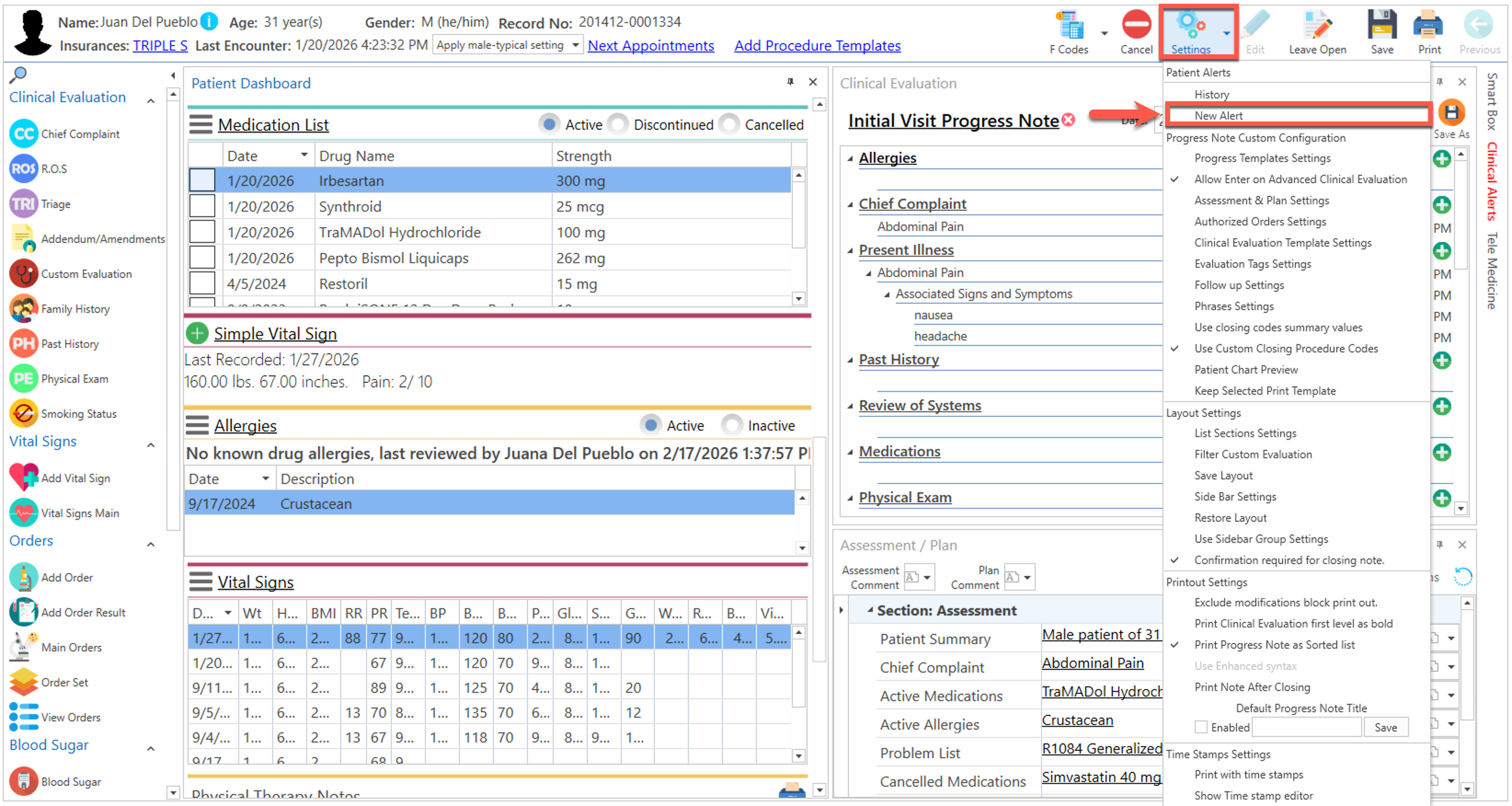 - Conociendo el área de: Advanced Progress Note / Settings / New Alert
