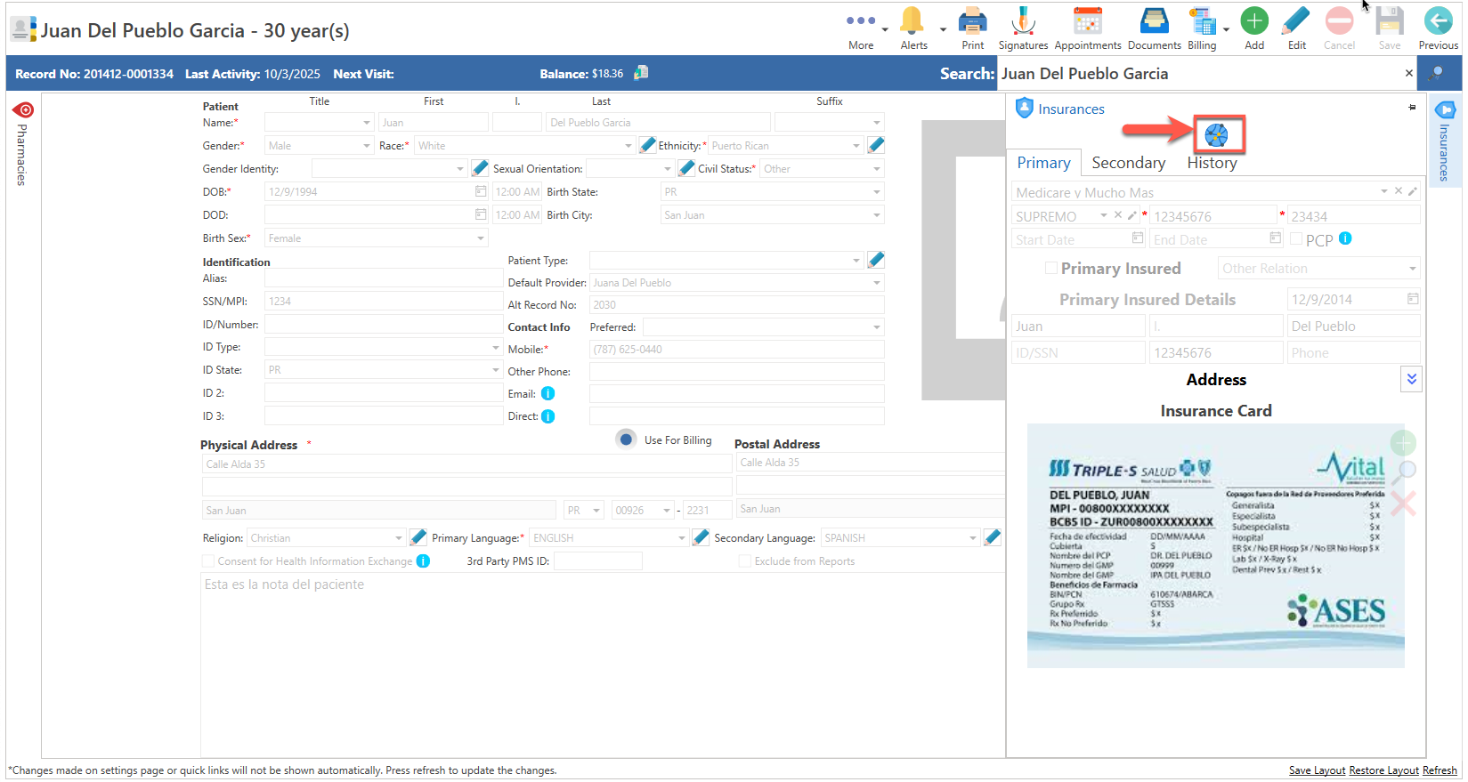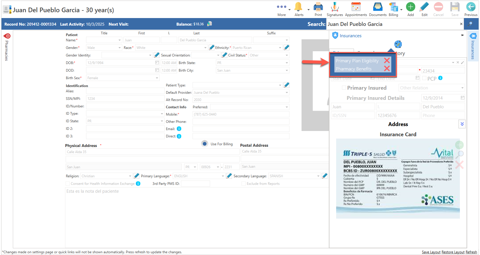 - Al momento de entrar a la pantalla de elegibilidad, la cubierta del plan médico del paciente será desplegada.