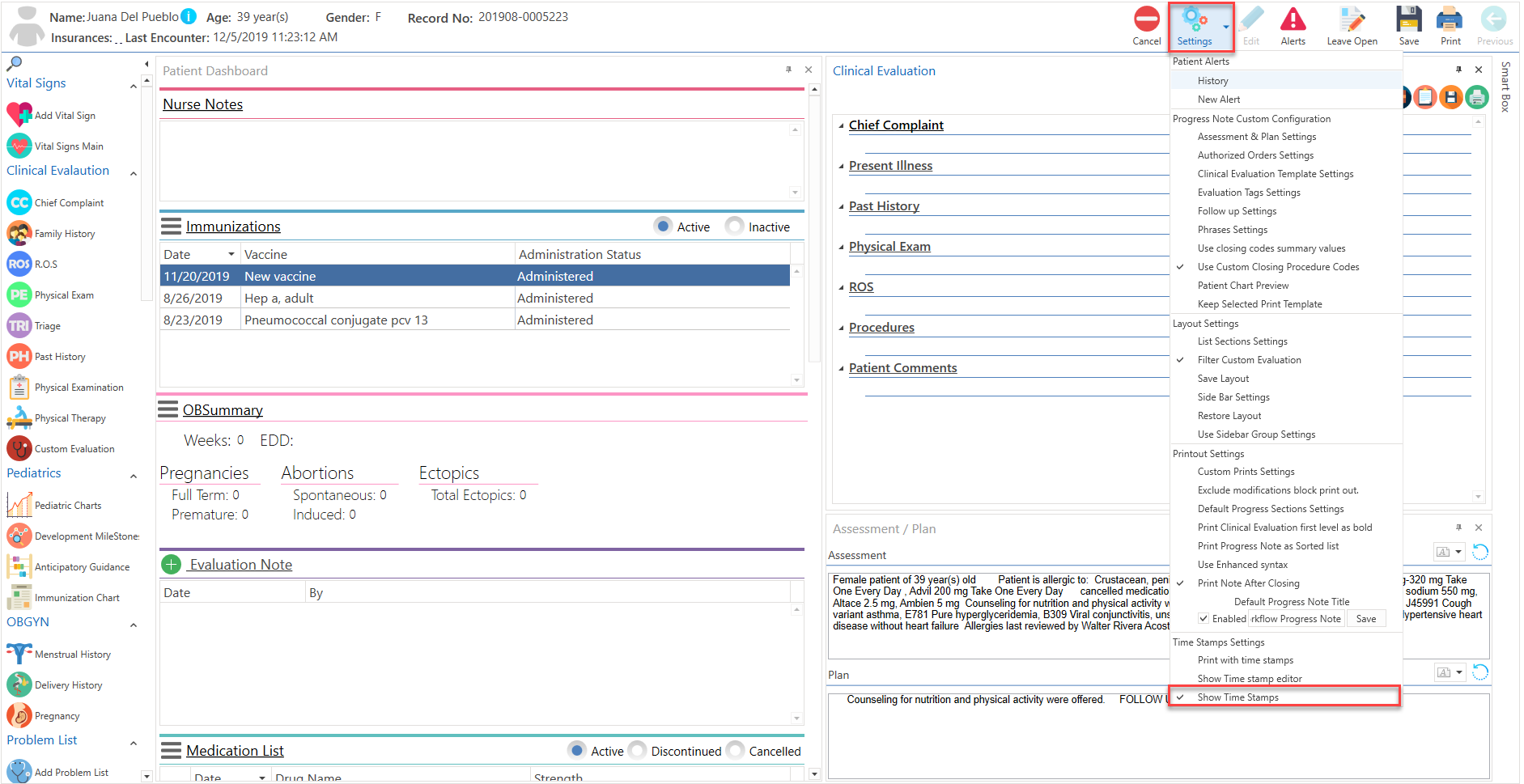- Se desplegarán las iniciales del usuario y la fecha, en la que realizó la evaluación clínica del paciente, en la sección de "Clinical Evaluation".