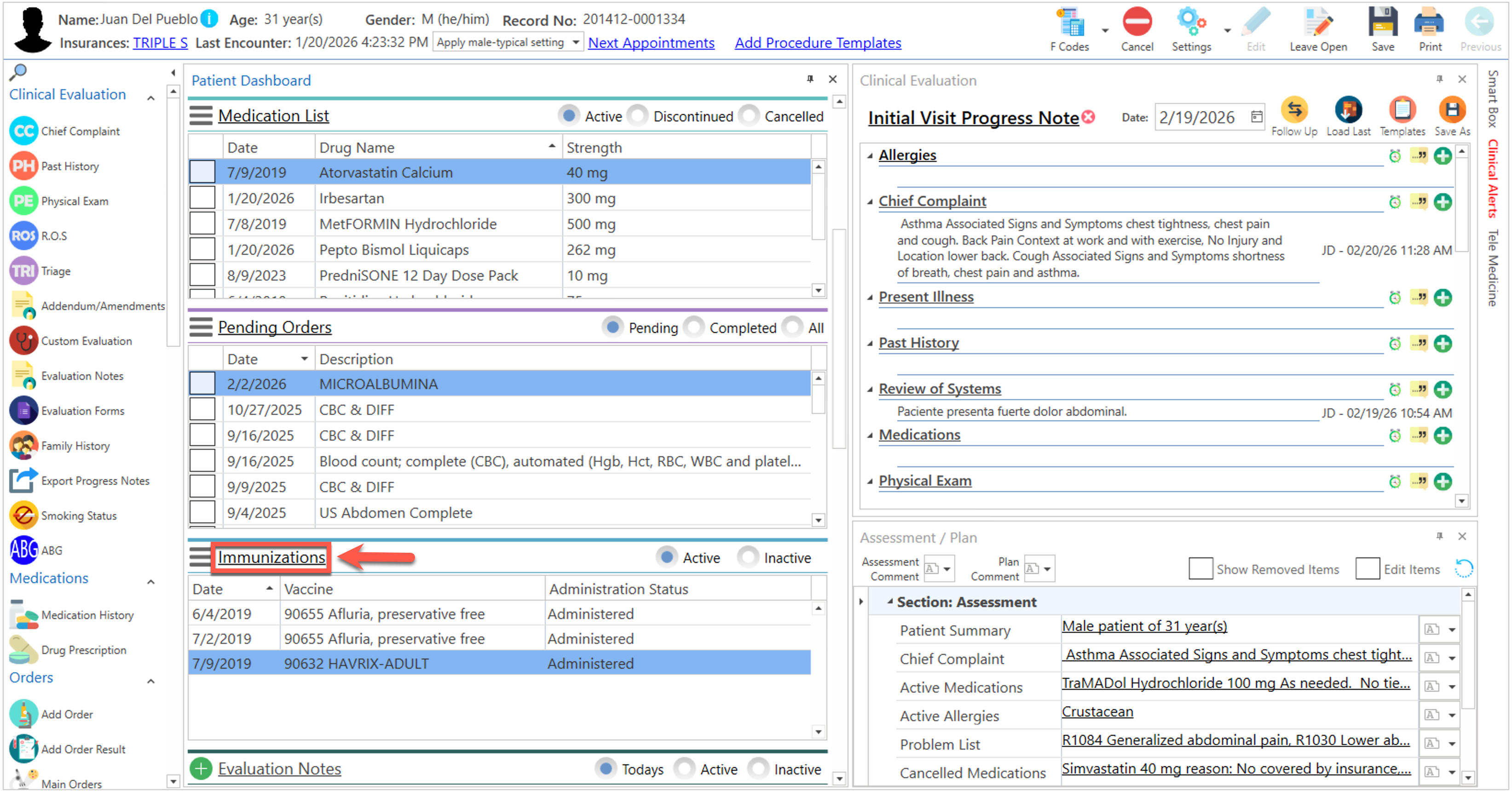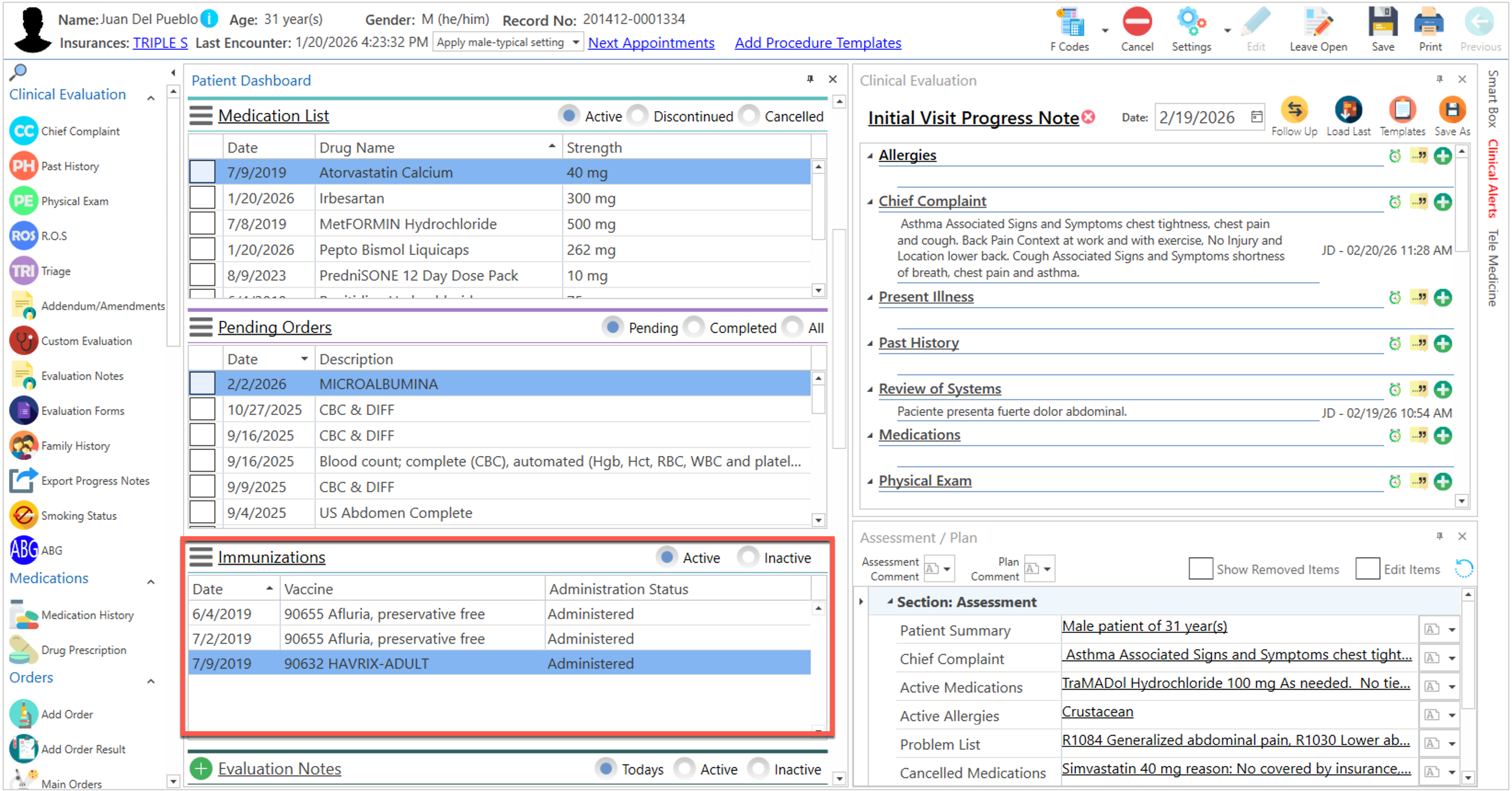 - Conociendo el área de: Advanced Progress Notes / Immunization