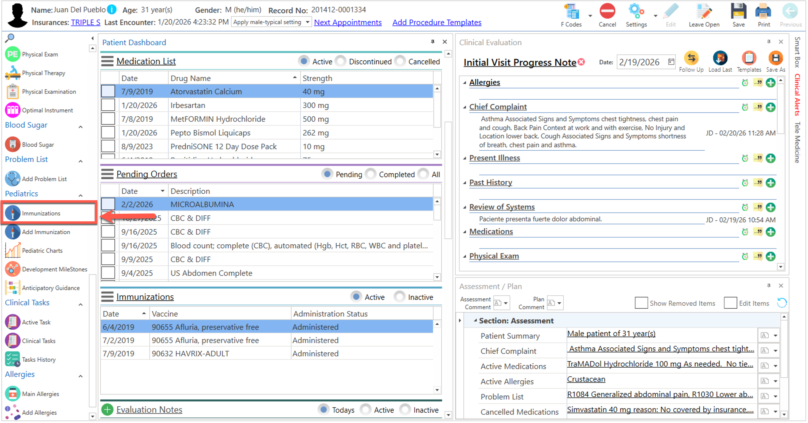 - Presione el botón de "Immunizations", localizado en la sección del "Side Bar".