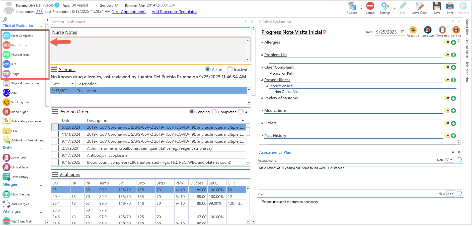 • Presione sobre el enlace de "Chief Complaint", localizado en la sección de "Clinical Evaluation".