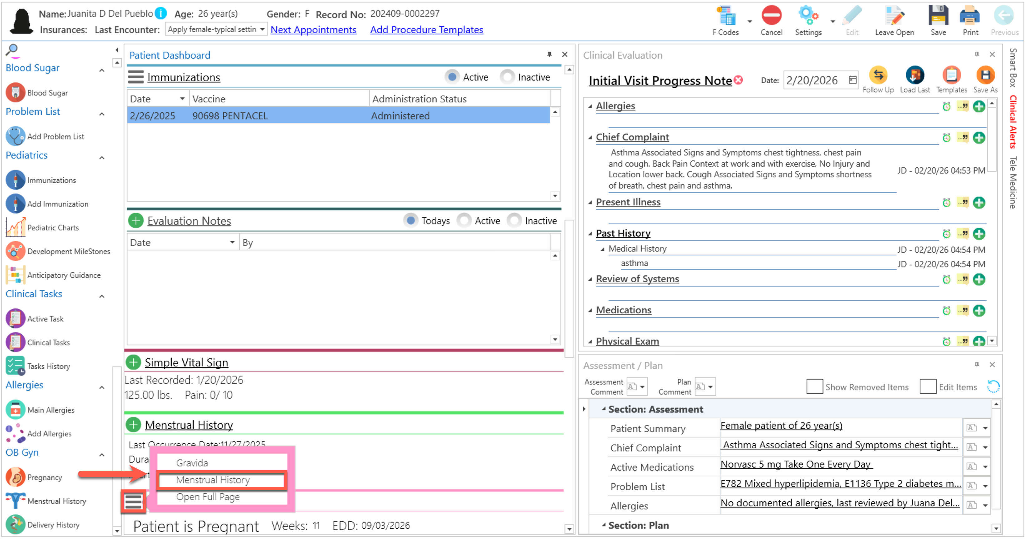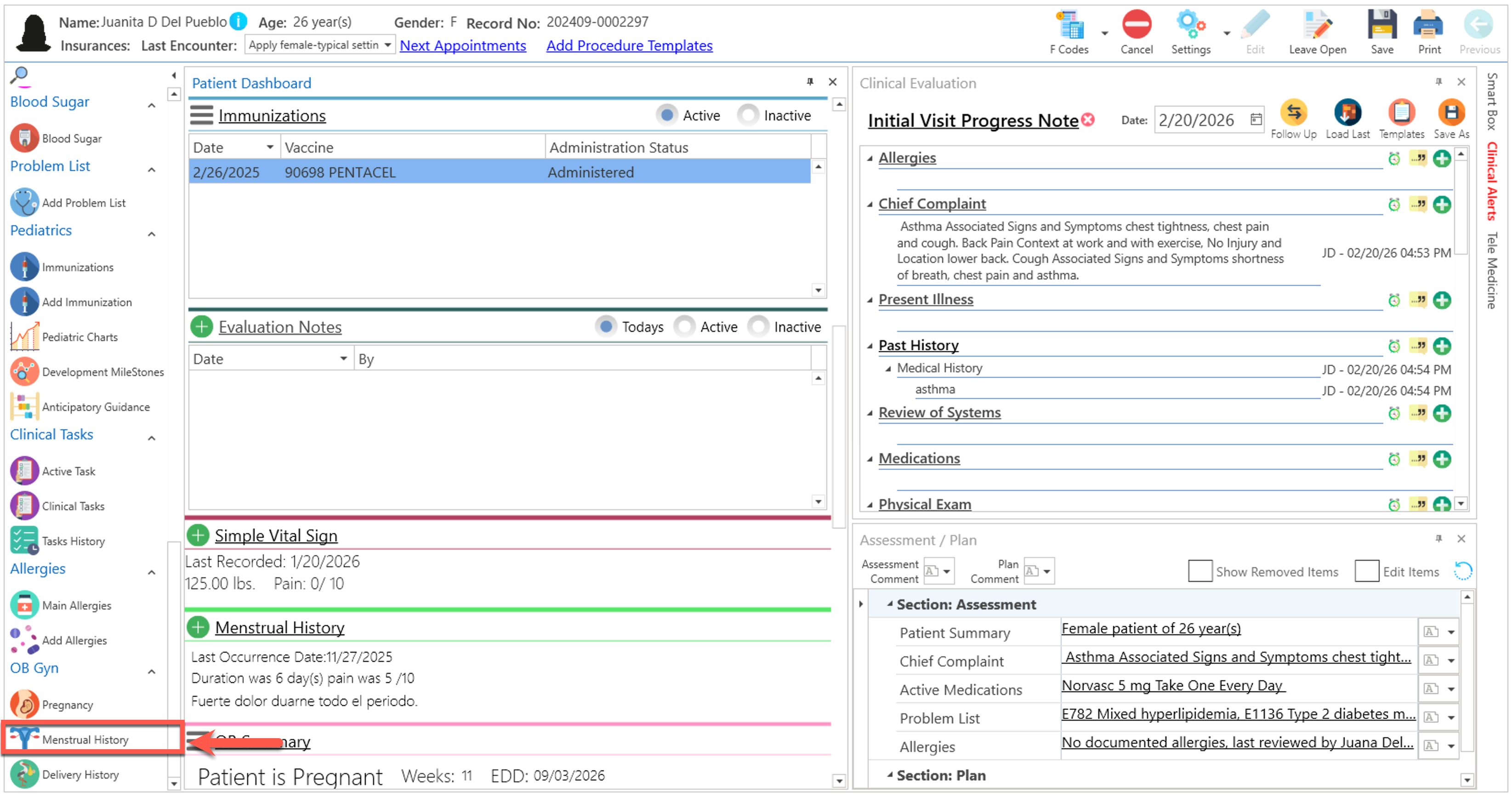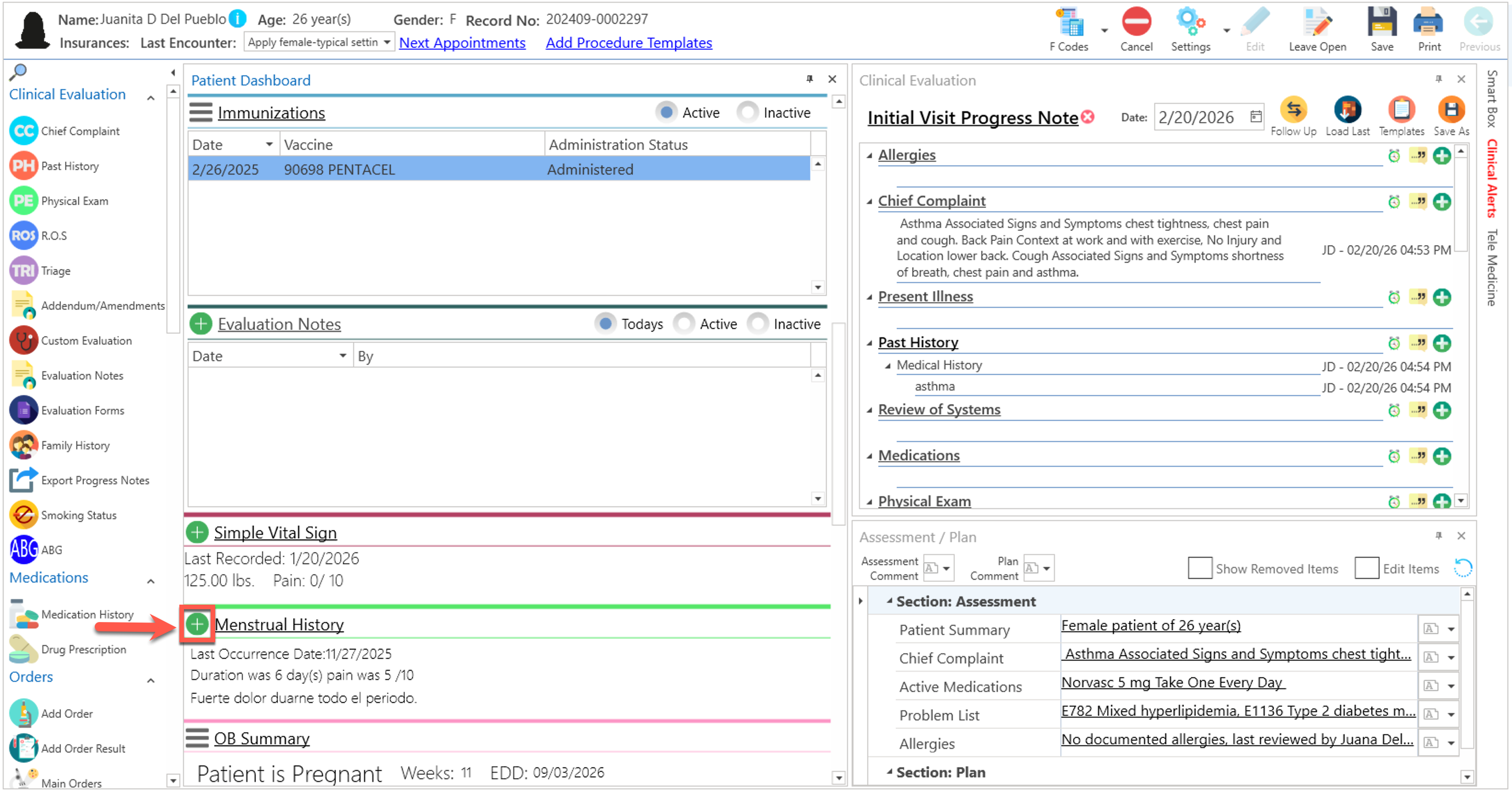 - Presione el enlace de "Menstrual History", en la sección del "Patient Dashboard".