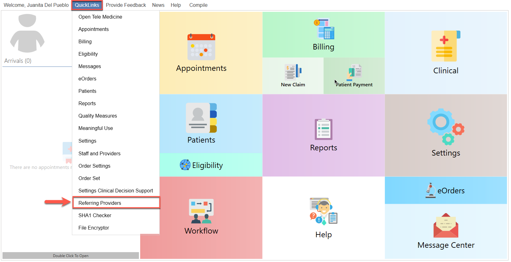 - Seleccione la opción de "Referring Providers".