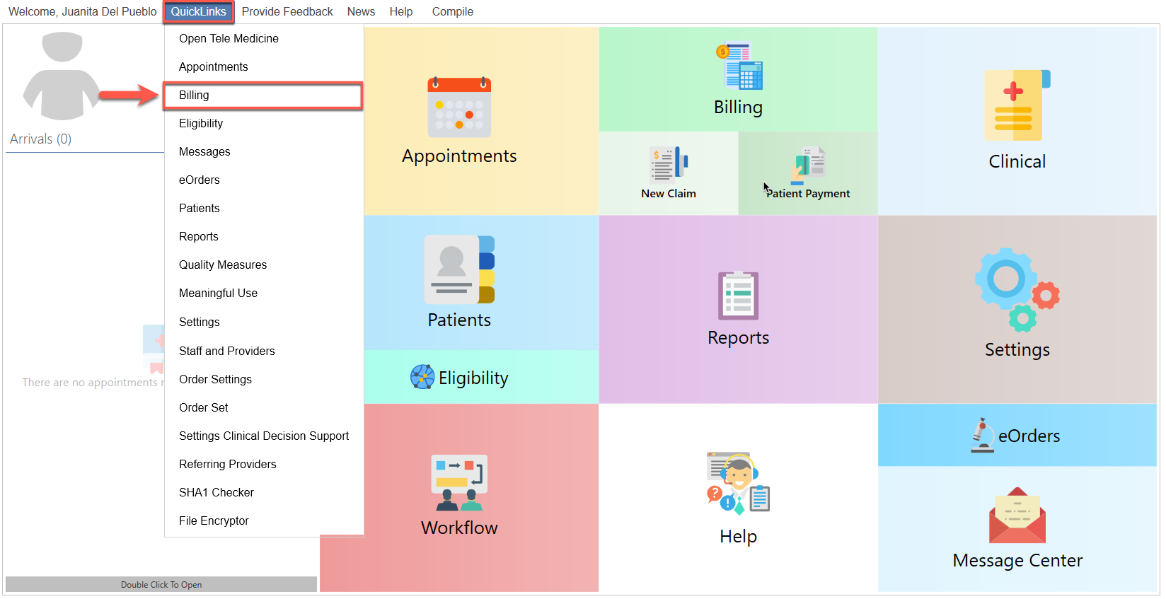 - Presione sobre el texto de "QuickLinks", localizado en la parte superior de la pantalla.