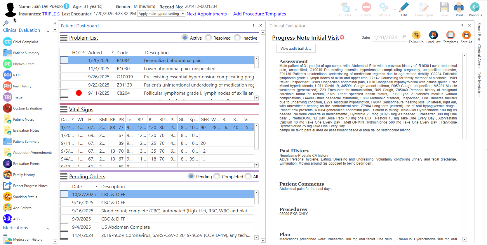 - También, puede presionar dos veces, sobre el paciente. (Se desplegará una nota de progreso nueva, siempre y cuando no exista, una nota de progreso abierta.)