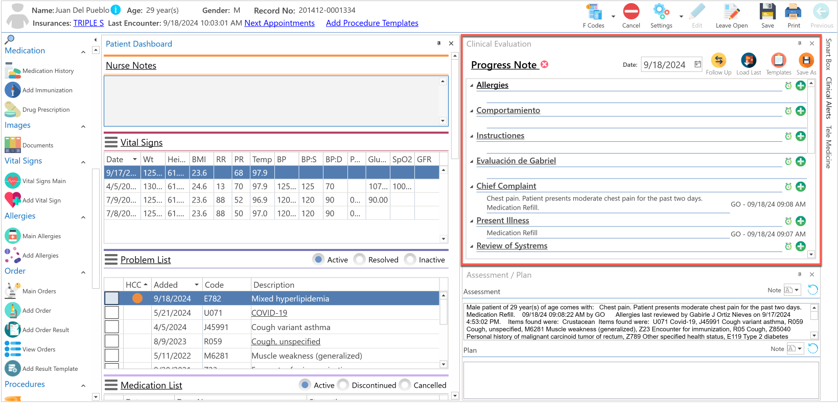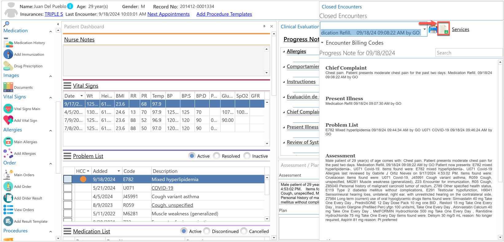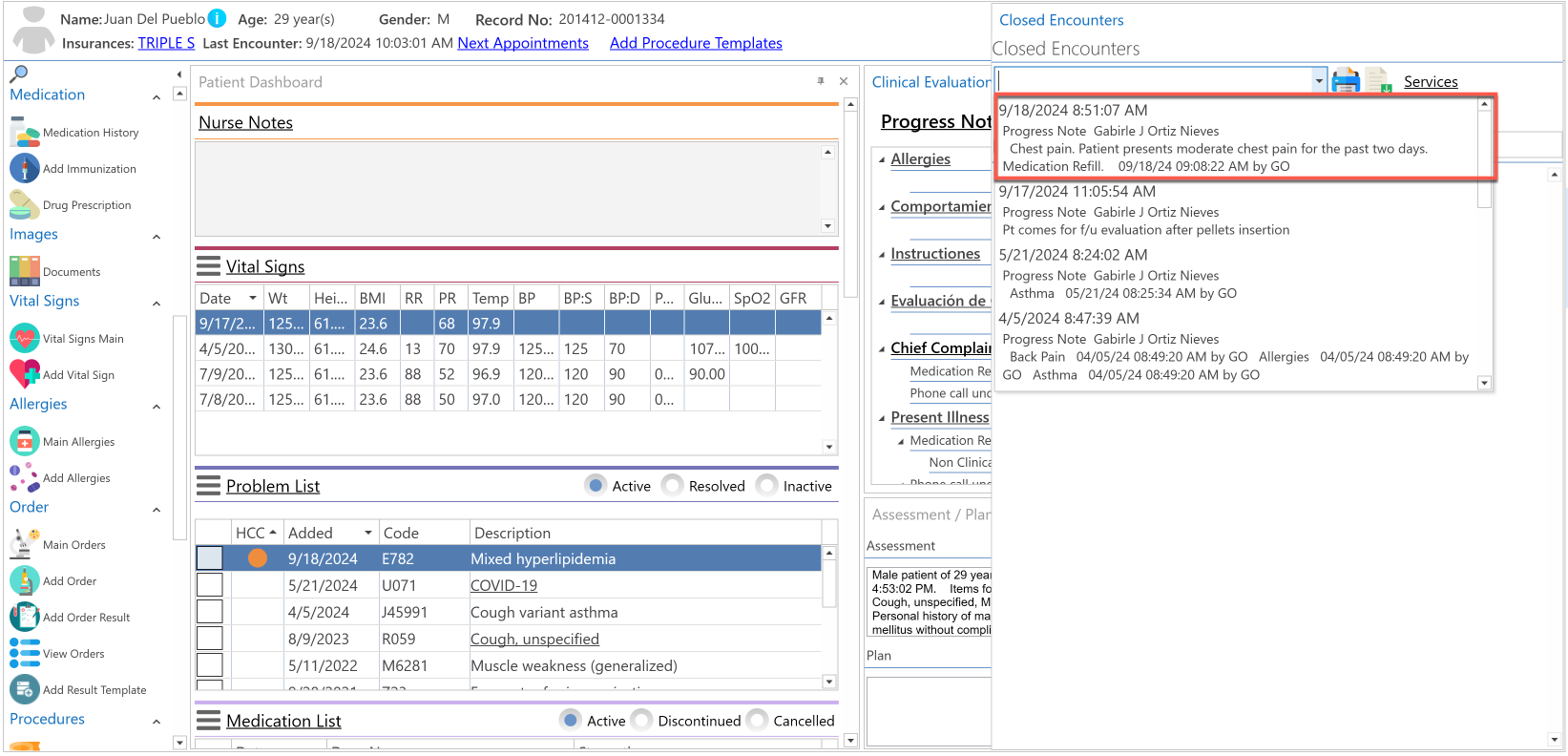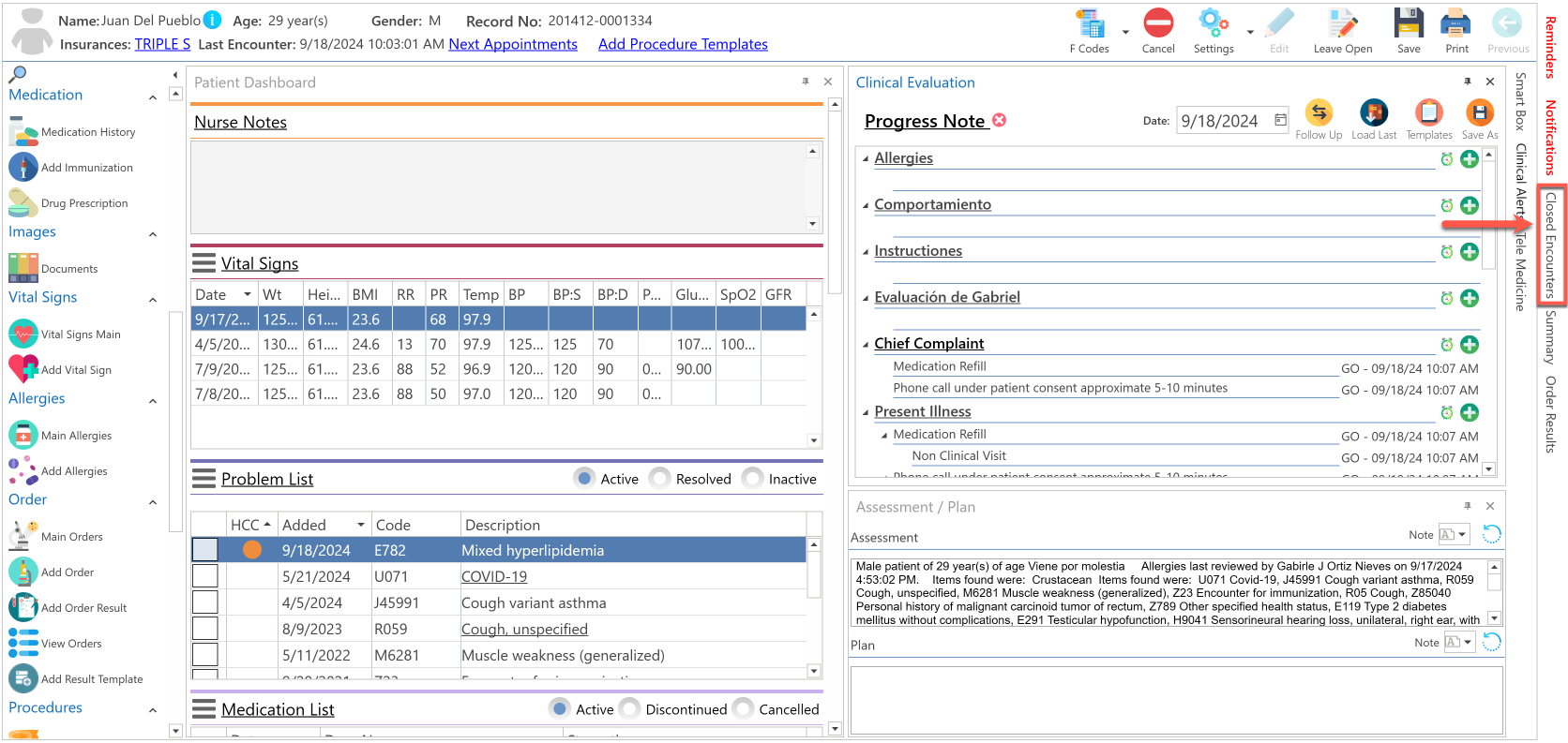 • Automáticamente, se desplegará el encuentro pasado seleccionado, en la nueva evaluación clínica del paciente.