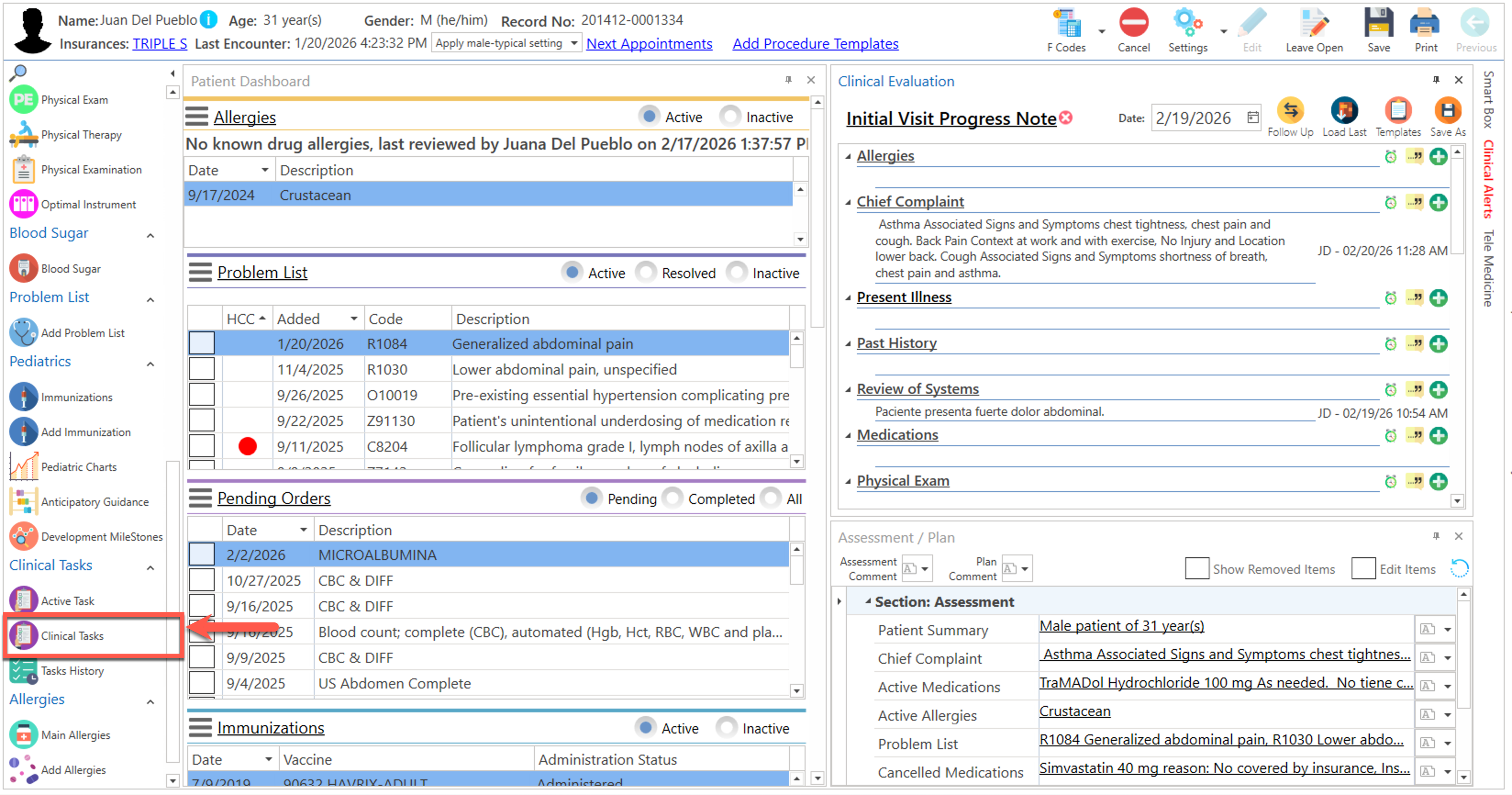 - Presione el botón de "Clinical Tasks", localizado en la sección del "Side Bar".