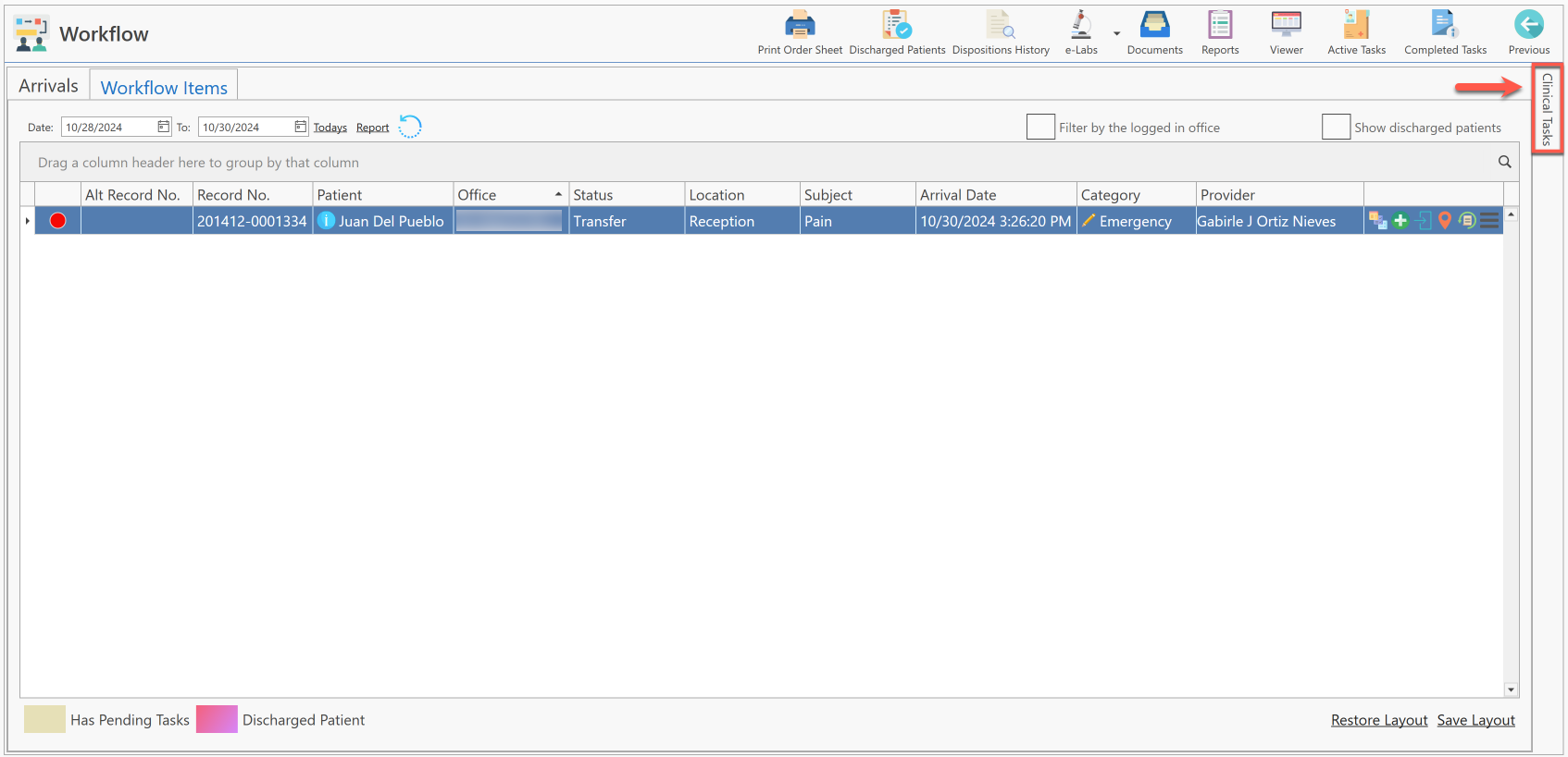 - Luego, presione la pestaña de "Clinical Tasks", localizada en la parte derecha de la pantalla.
