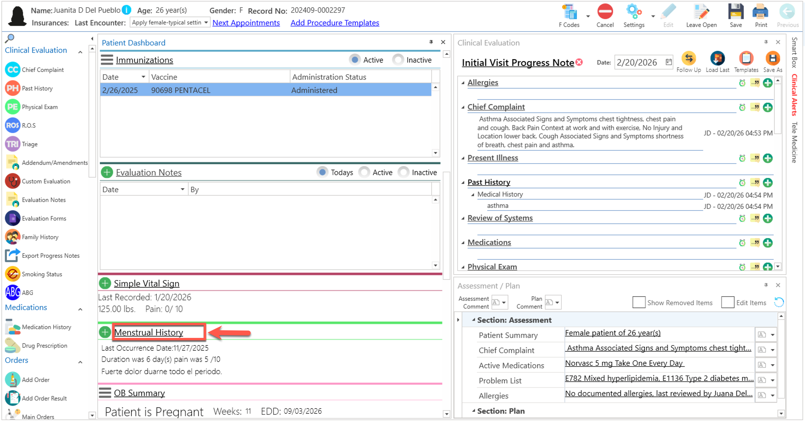 - Conociendo el área de: Advanced Progress Note / Menstrual History