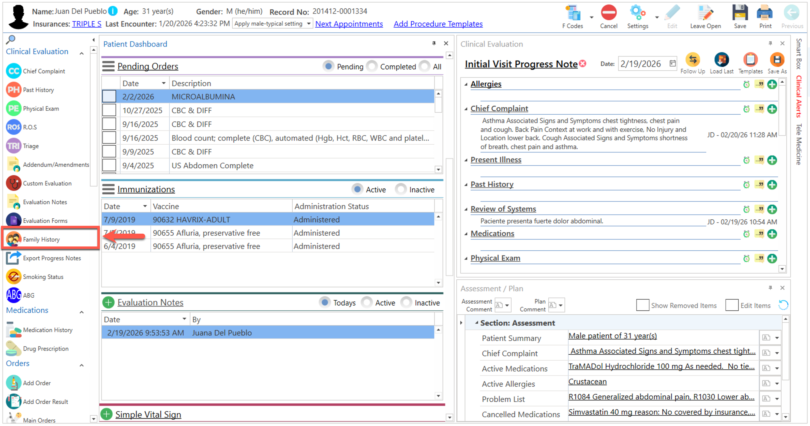 • Presione el botón de "Family History", localizado en la sección del "Side Bar".