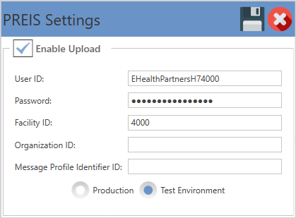 • PREIS (Puerto Rico Electronic Immunization System): Sección para habilitar, la transmisión al sistema de registro de vacunas en Puerto Rico (PREIS). Esta información, es provista solo, por el Departamento de Salud de Puerto Rico.