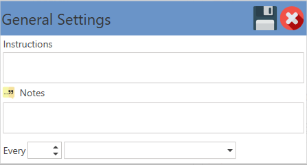- En la misma, se pueden agregar instrucciones generales, presionando sobre el enlace de "General". Por ejemplo: Tomar presión y signos vitales al paciente, cada hora, para propósitos de observación. De igual manera, podrá agregar el tiempo recurrente, que debe realizarse, las instrucciones impartidas por el proveedor.