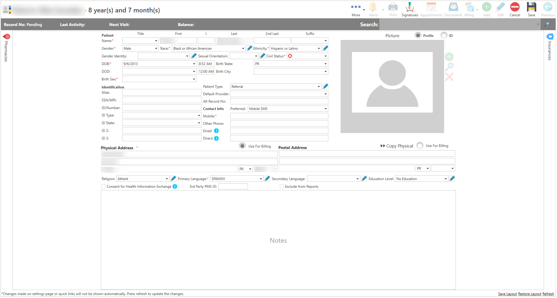 - Se desplegará la pantalla de "Patient Details", para completar el registro de la información demográfica del paciente. Incluyendo el plan médico.