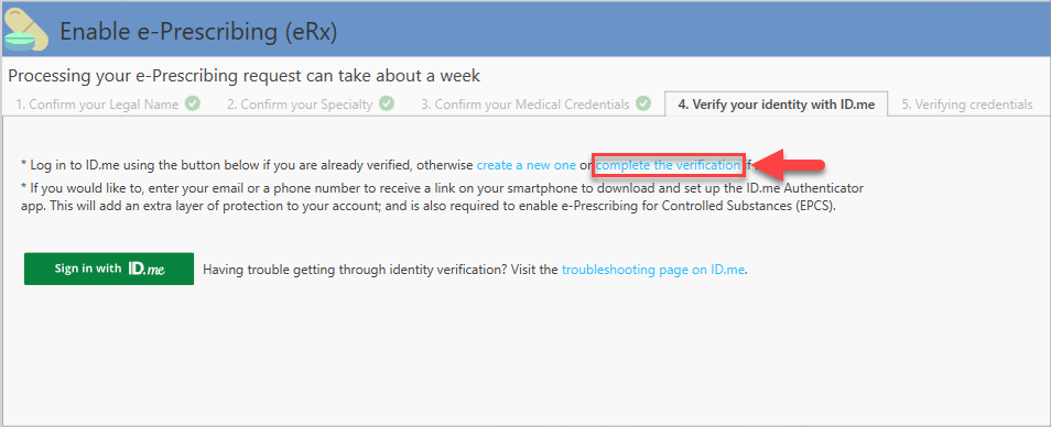 - Luego, continué con el proceso de verificación de identidad del proveedor en ID.me. Se recomienda leer el siguiente artículo: EPCS Verificación de Identidad en ID.me