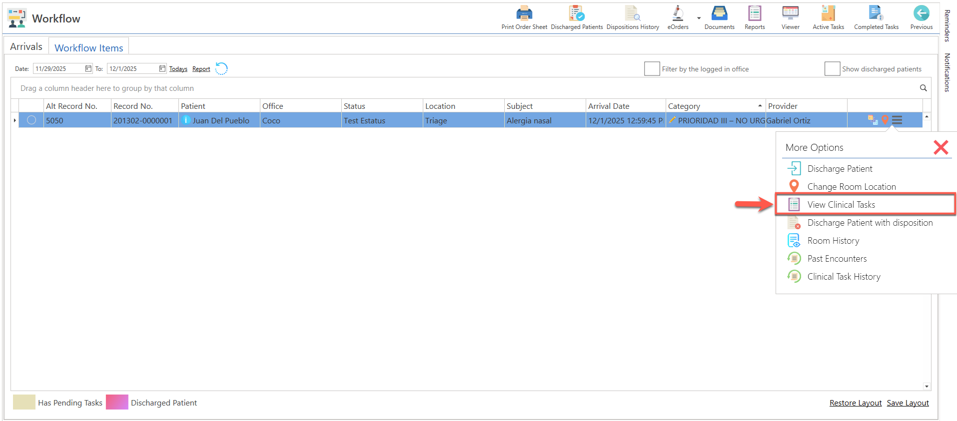 - Luego, seleccione la opción de "View Clinical Tasks".
